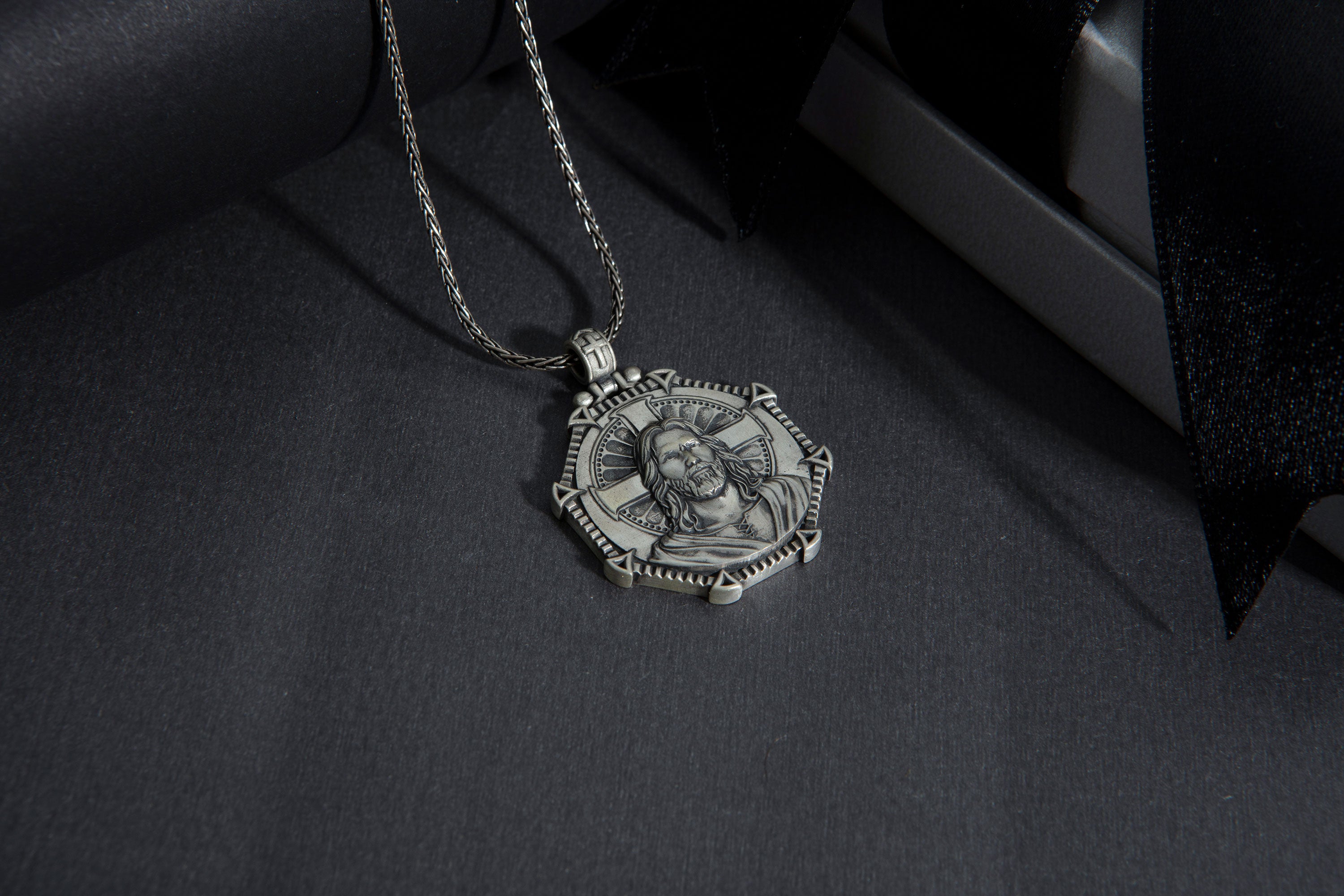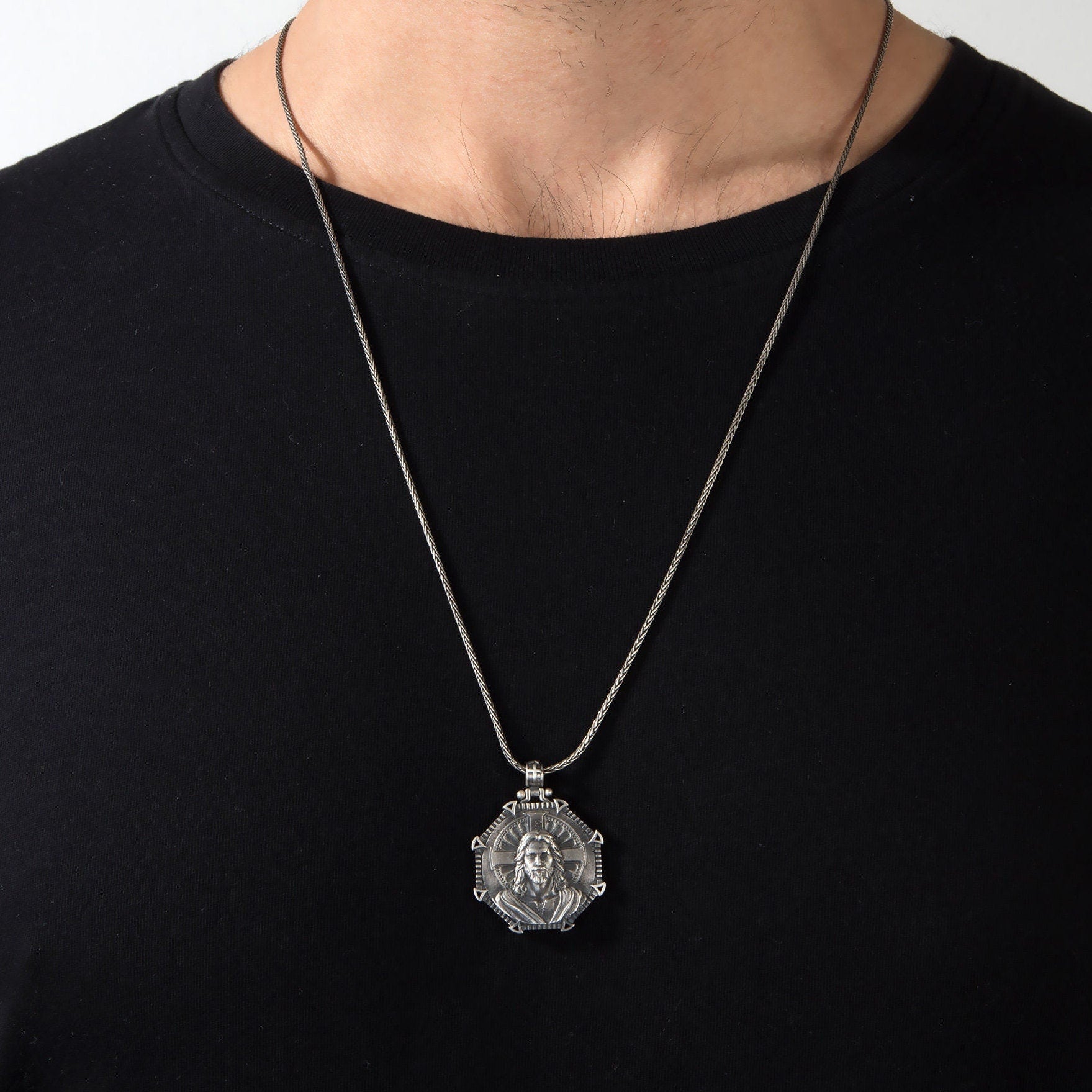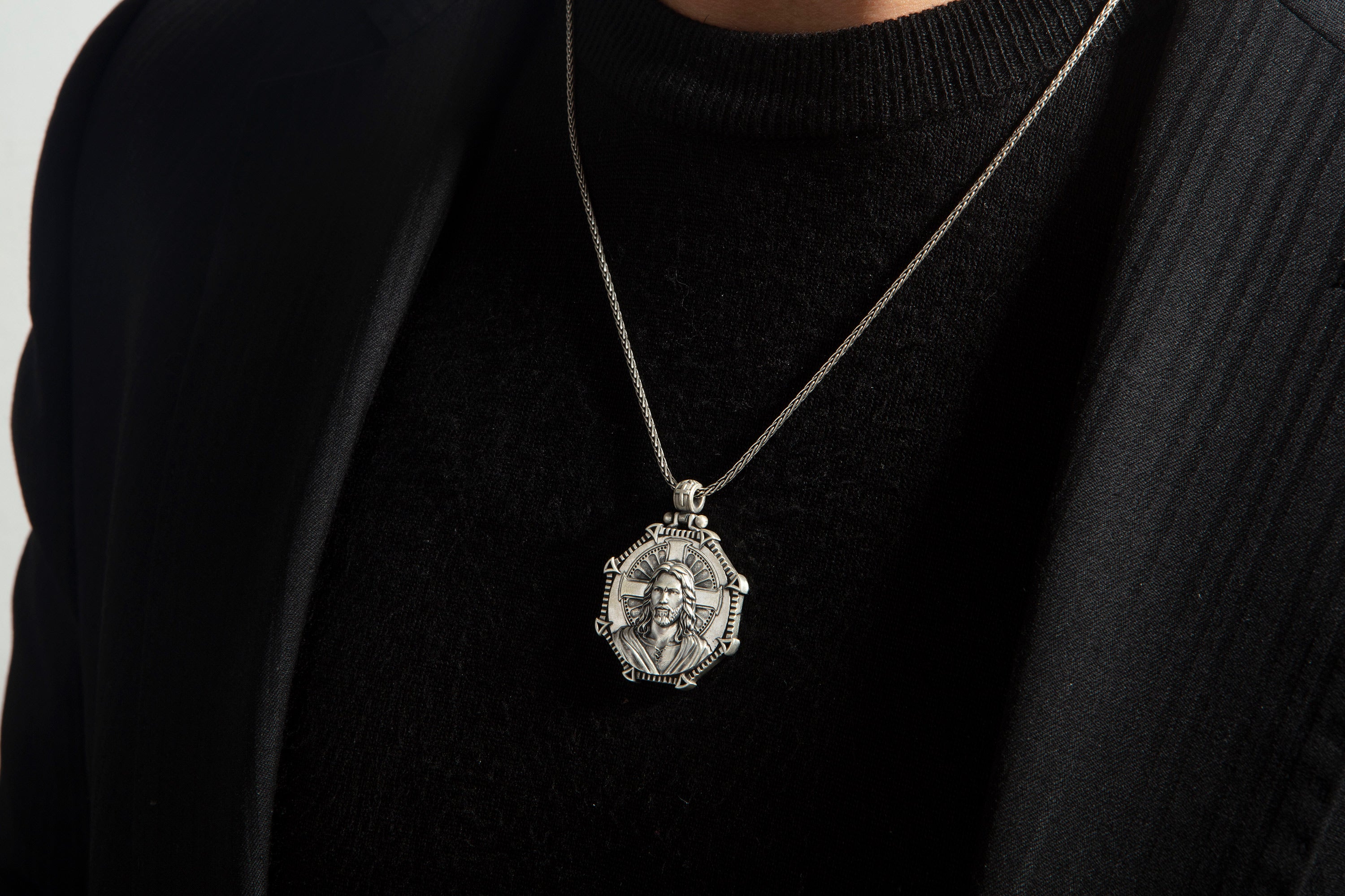 Men’s 925 Sterling Silver Jesus Pendant Necklace