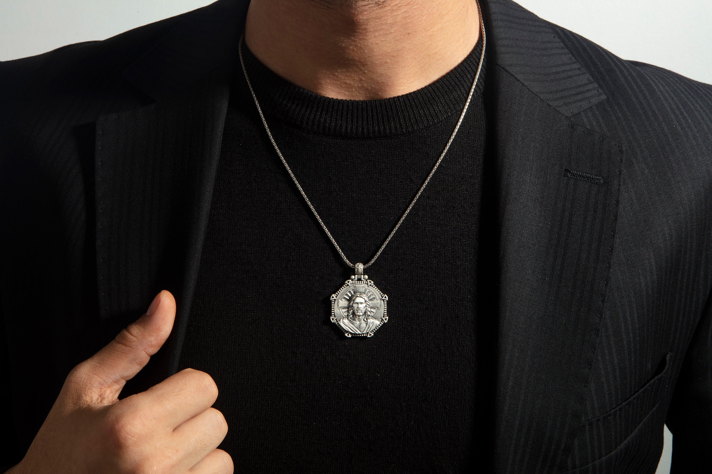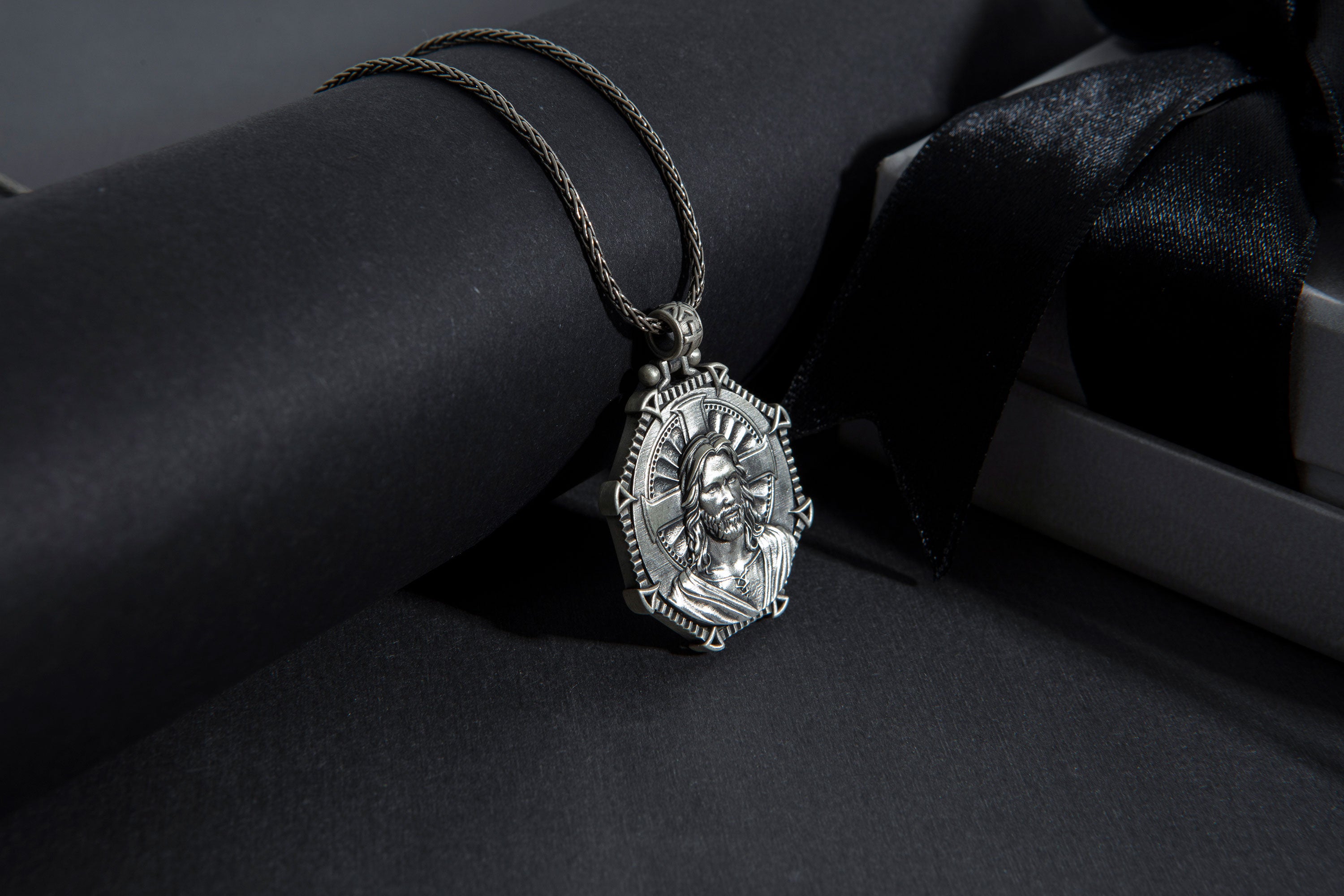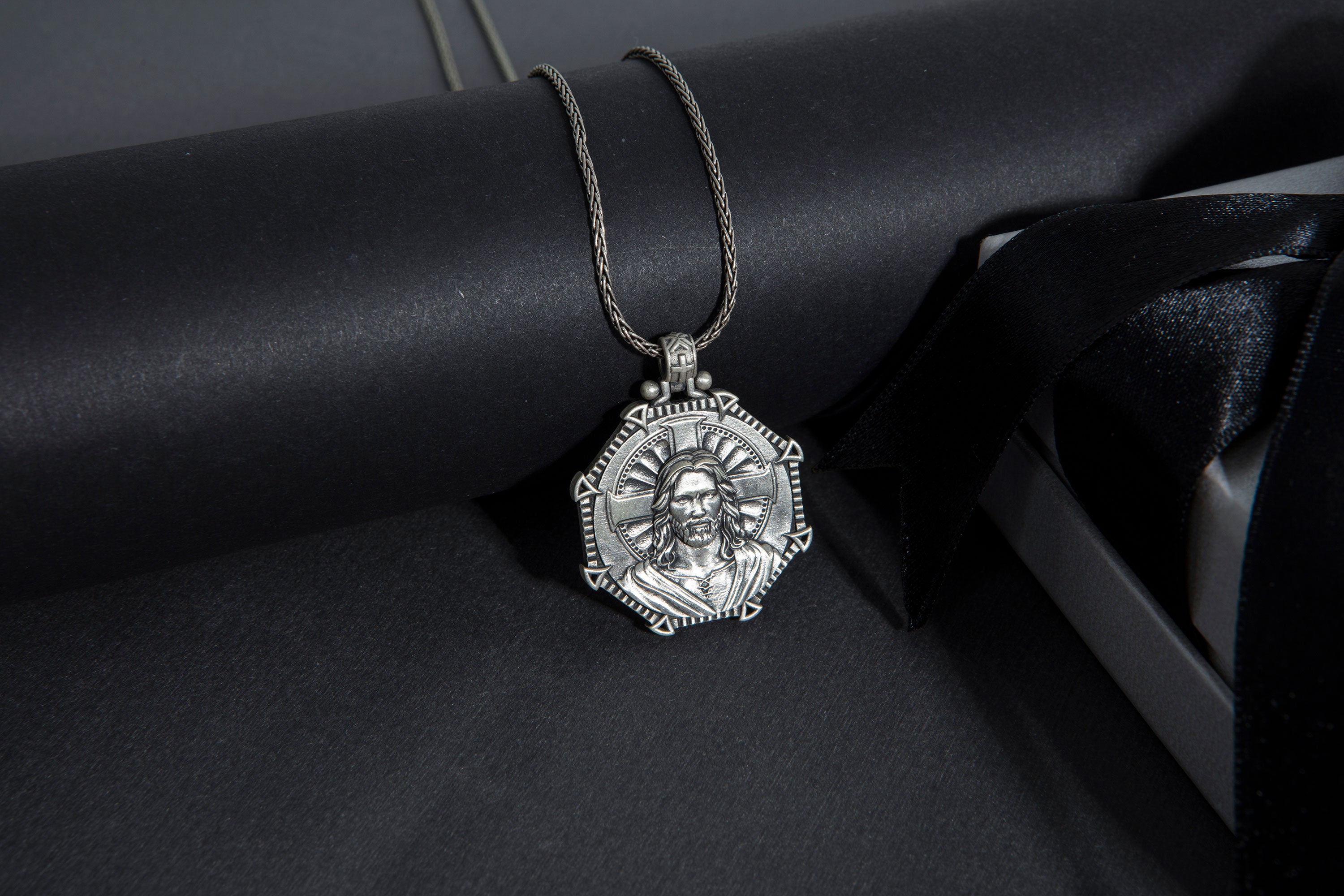 Men’s 925 Sterling Silver Jesus Pendant Necklace