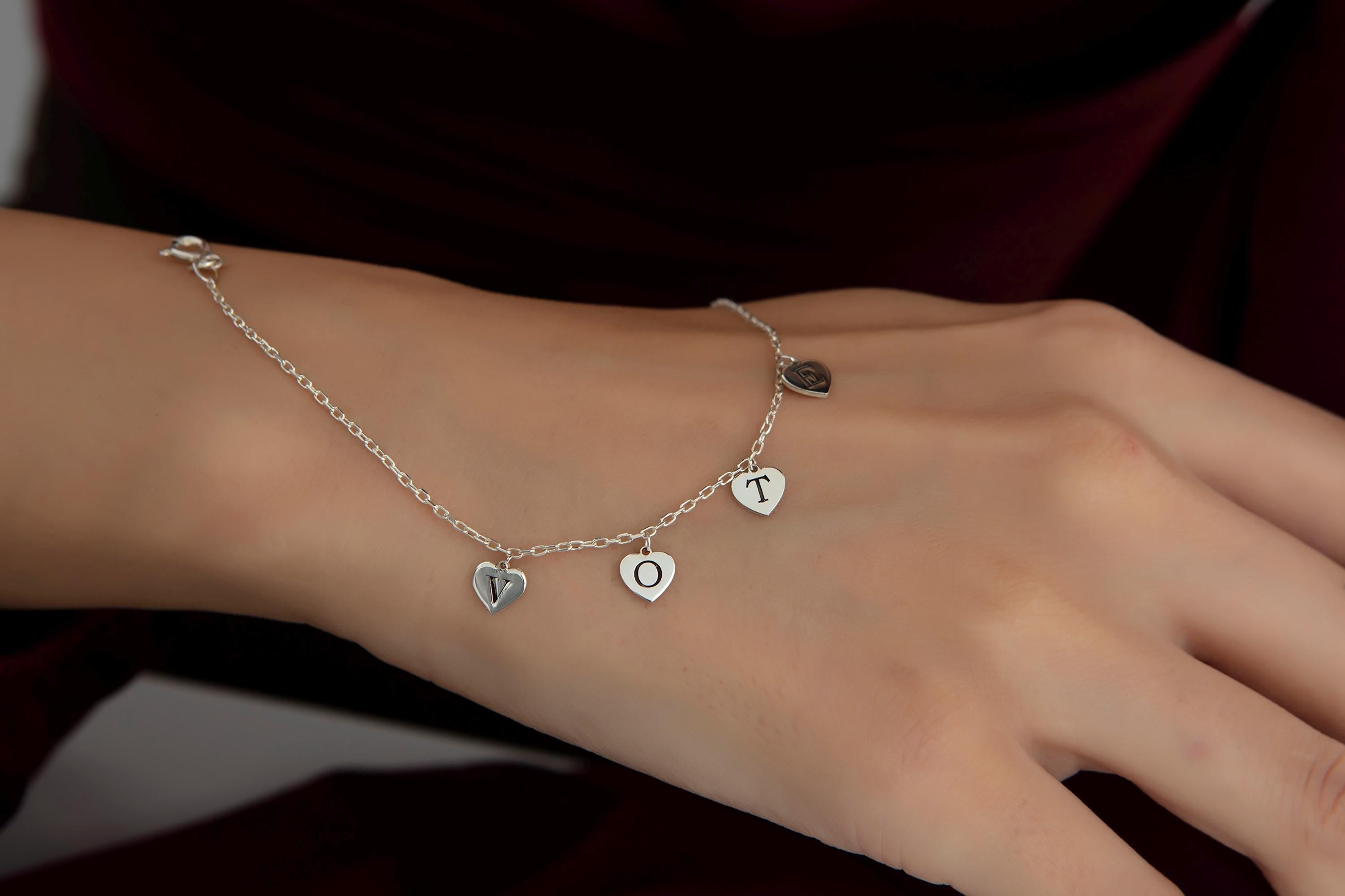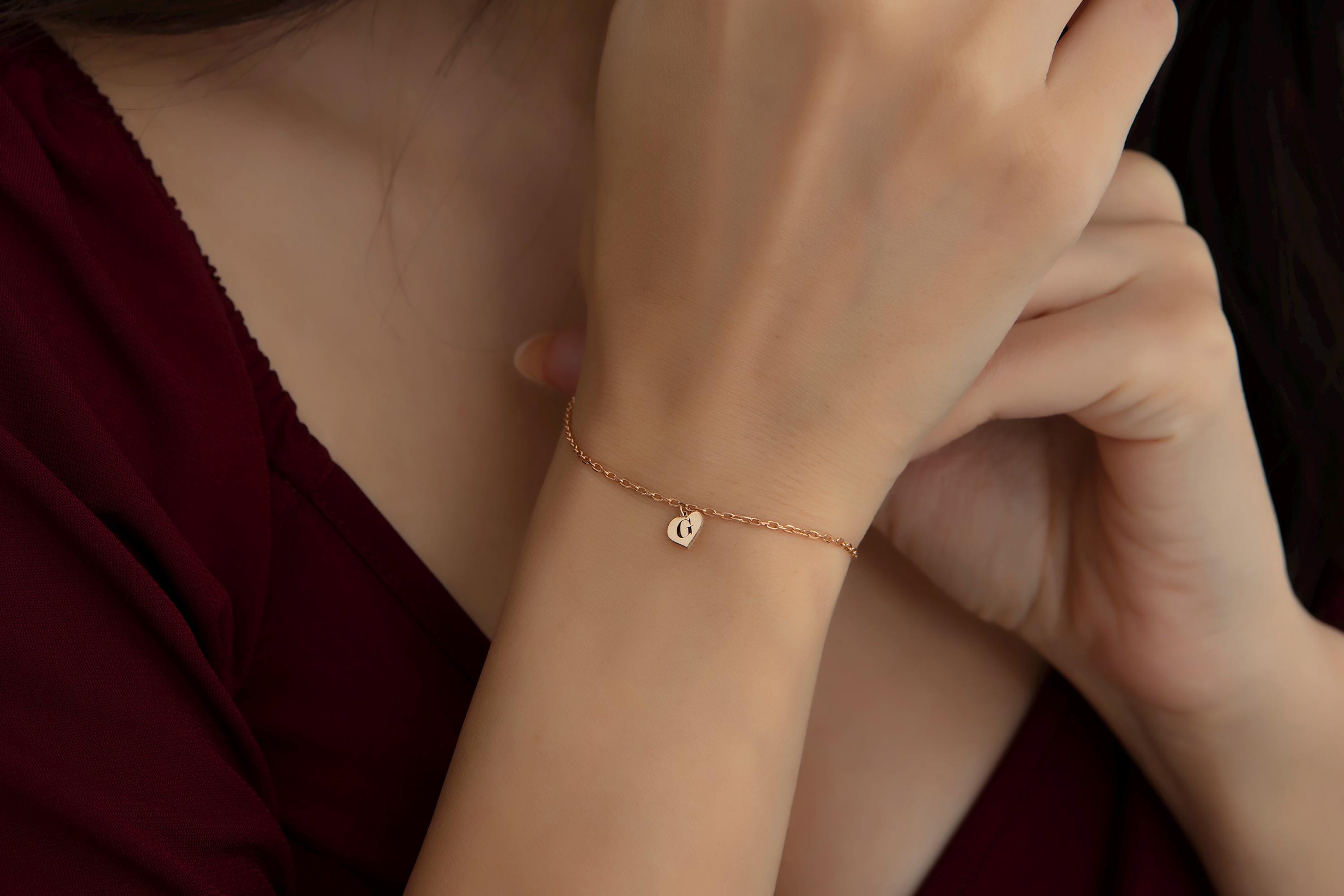 ♥ Dainty Dangle Name Initial Heart Bracelet the most unique jewelry you can find...