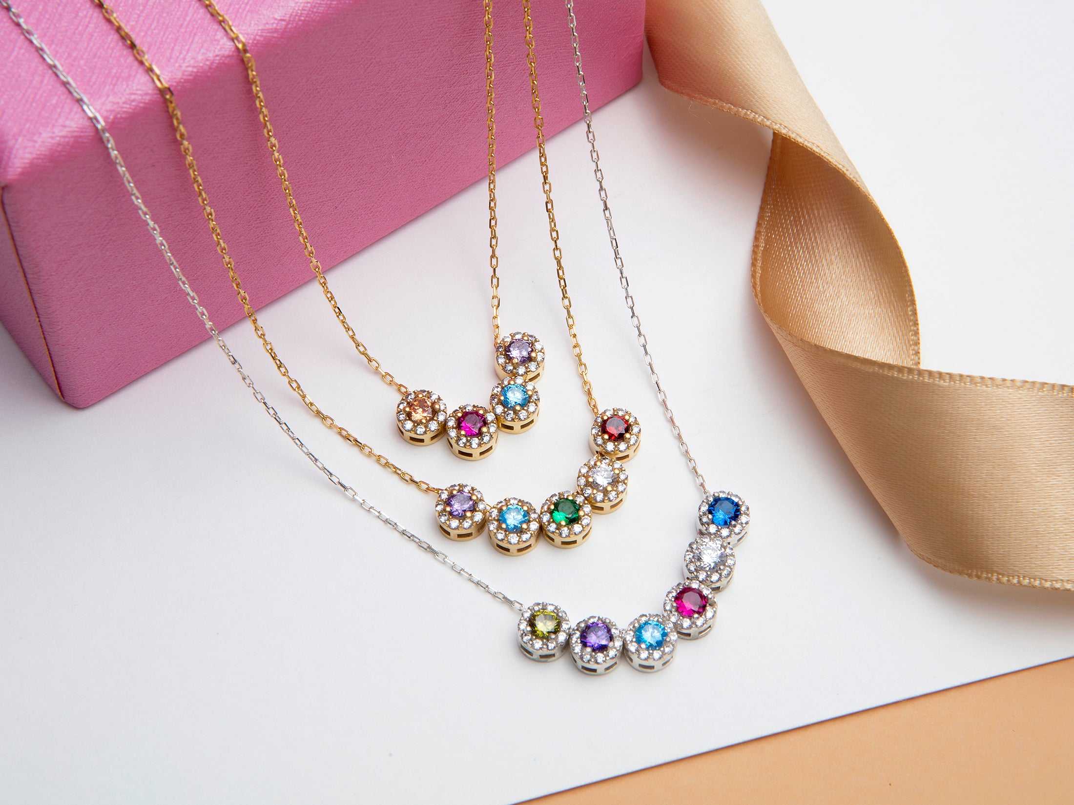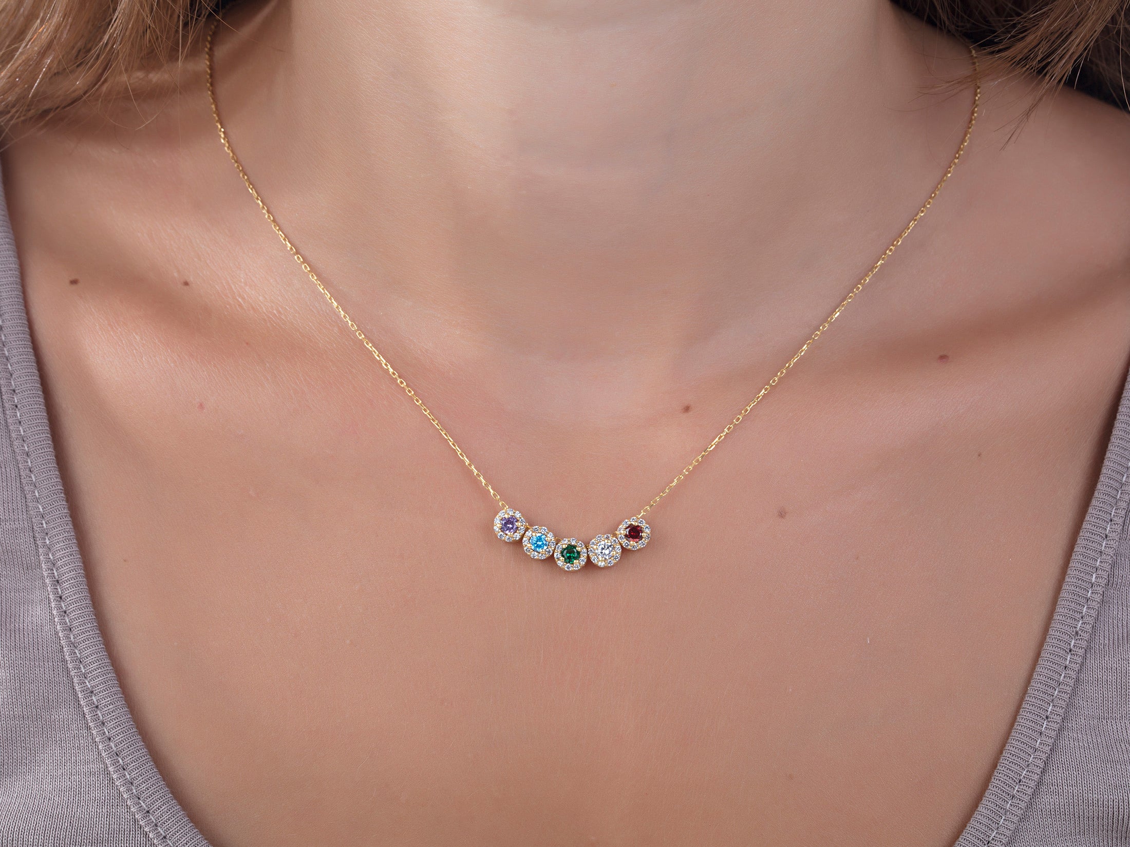 Baguette Birthstone Bar Necklace - Family Birthstone Necklace