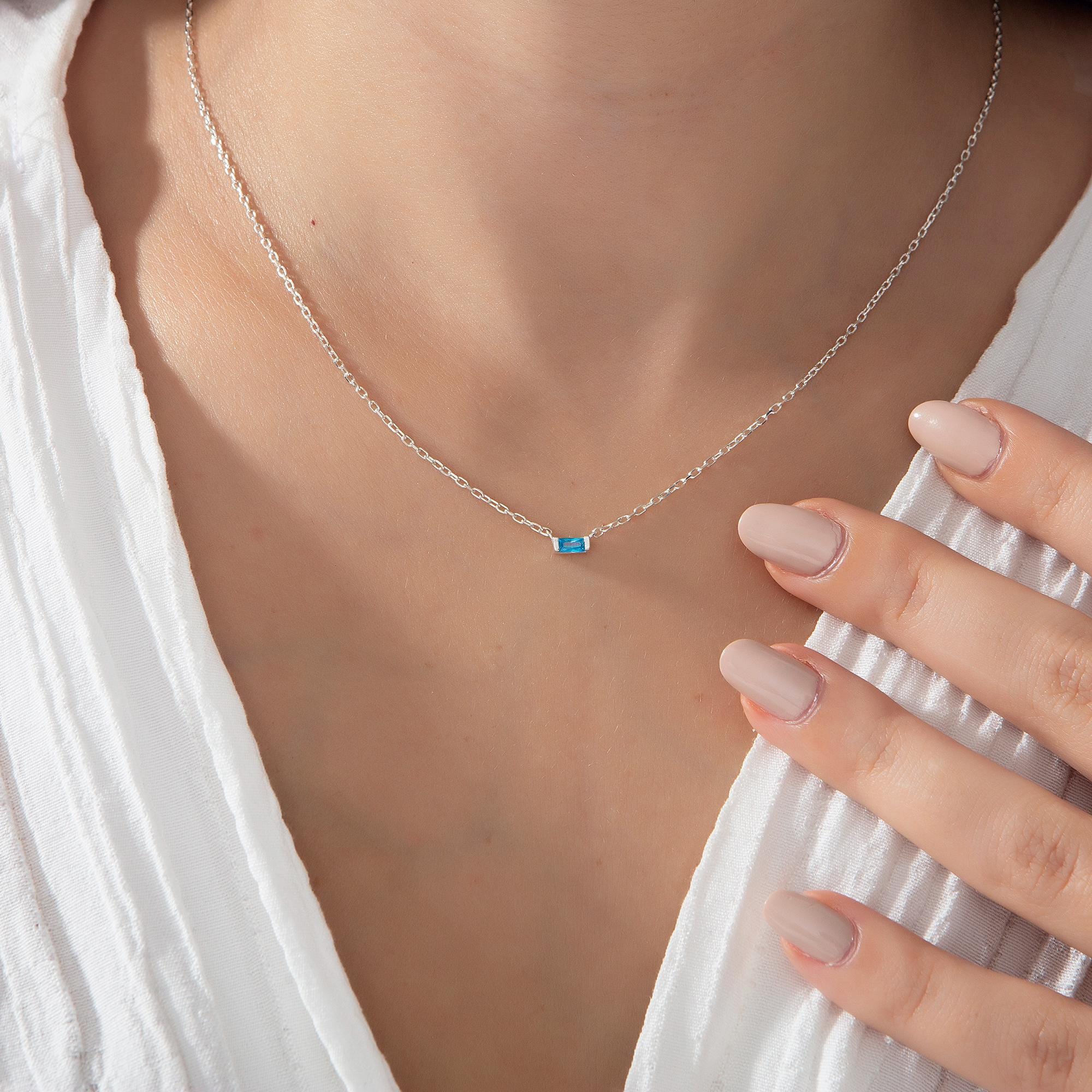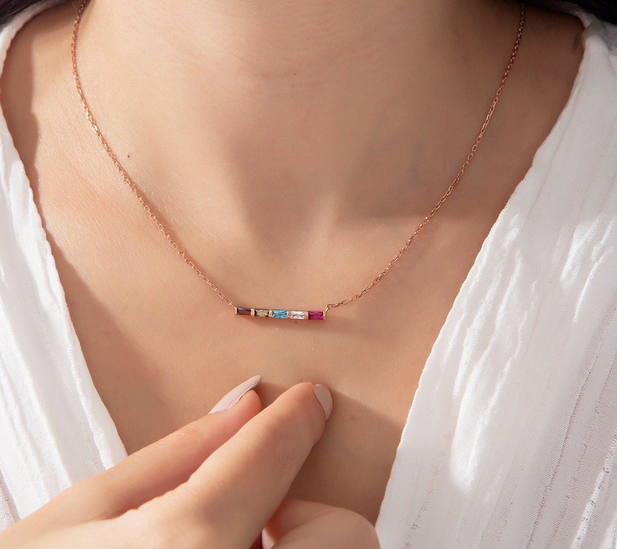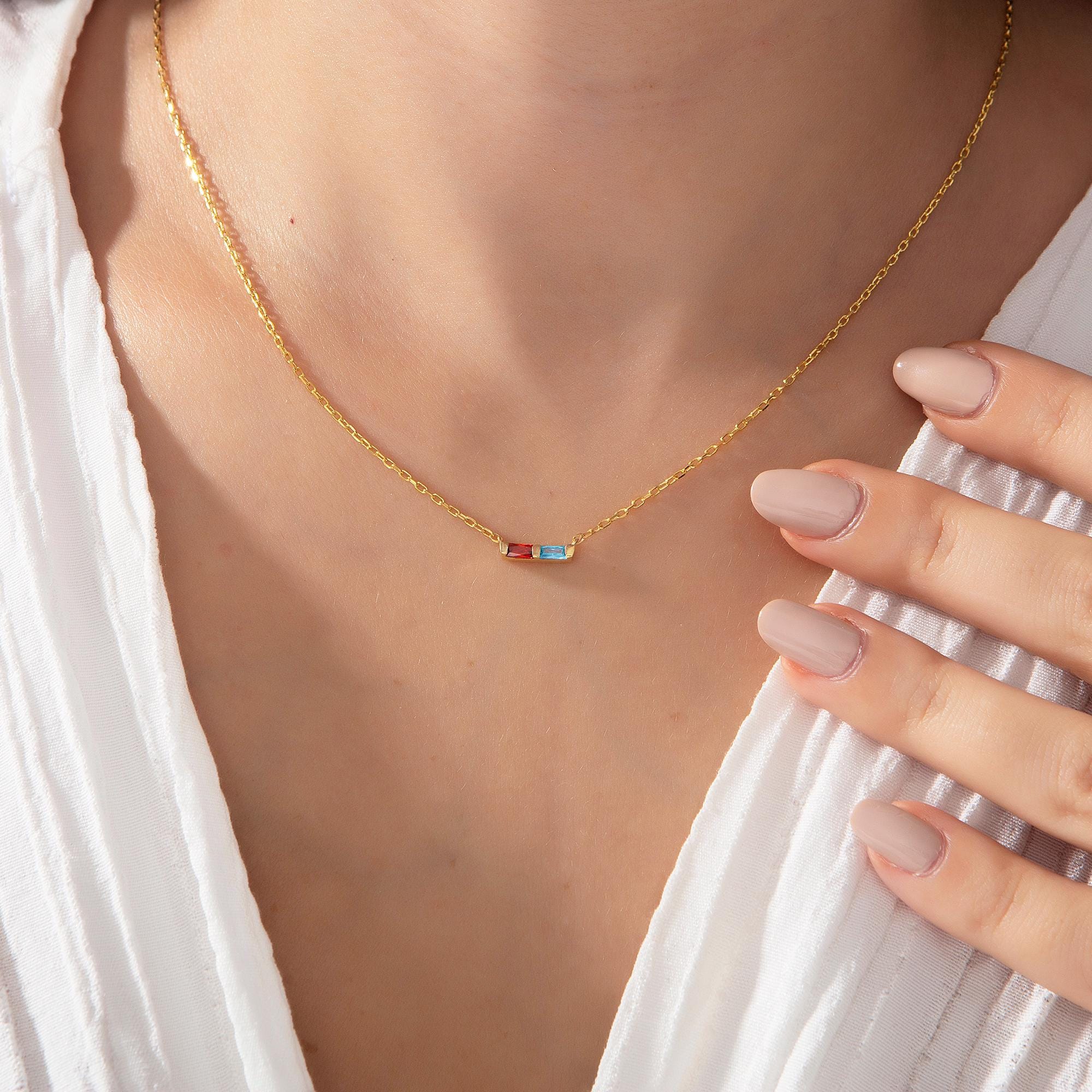 * Baguette Birthstone Necklace with your desired 1-2-3-4-5-6-7-8-9-10-11 or 12 birthstones; this family birthstone necklace makes perfect personalized gift♥