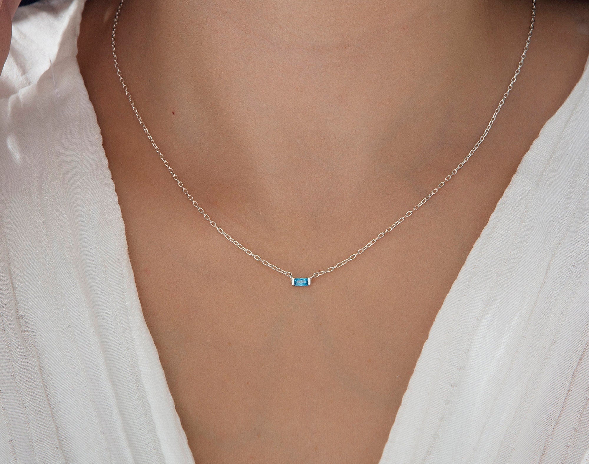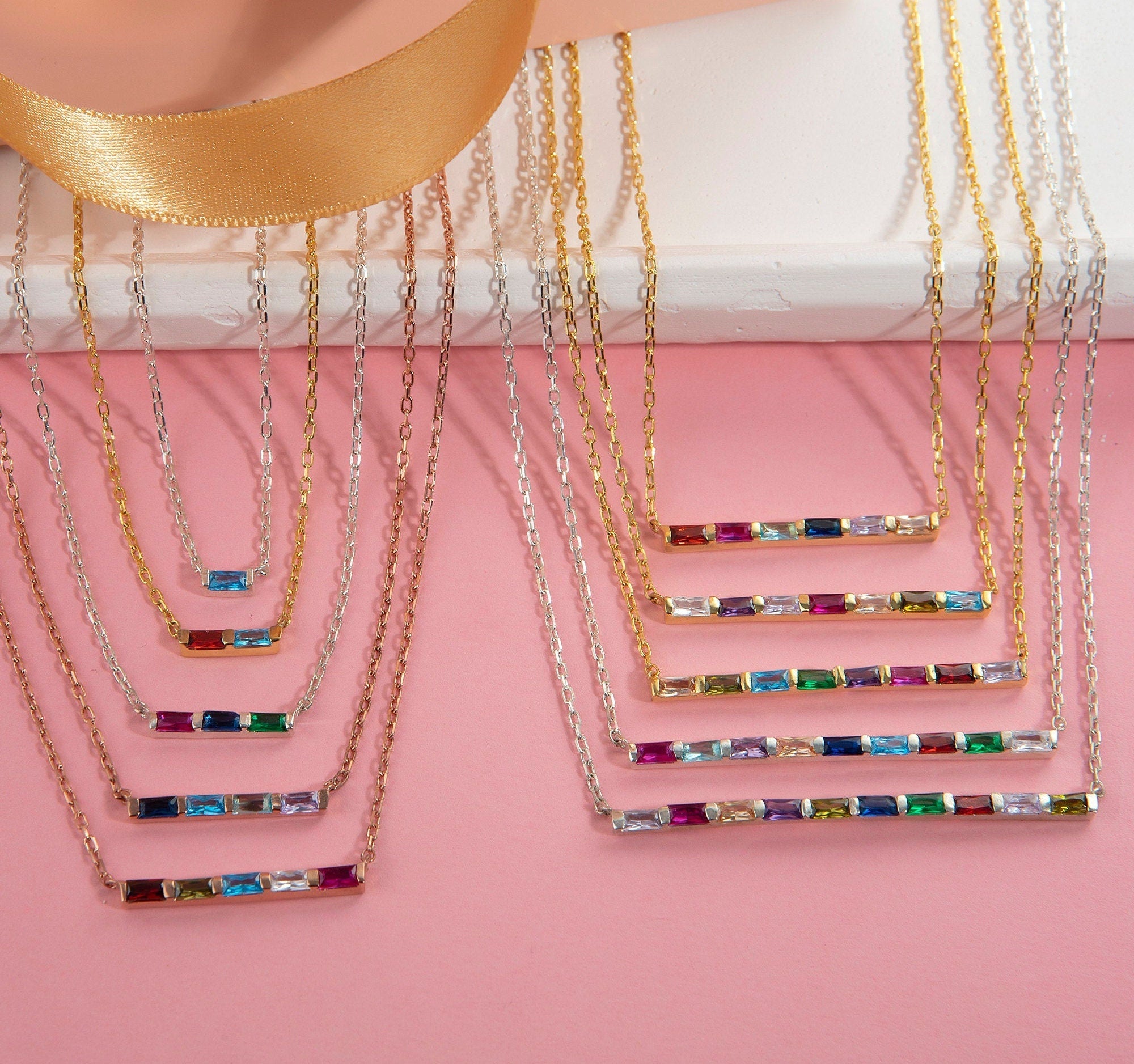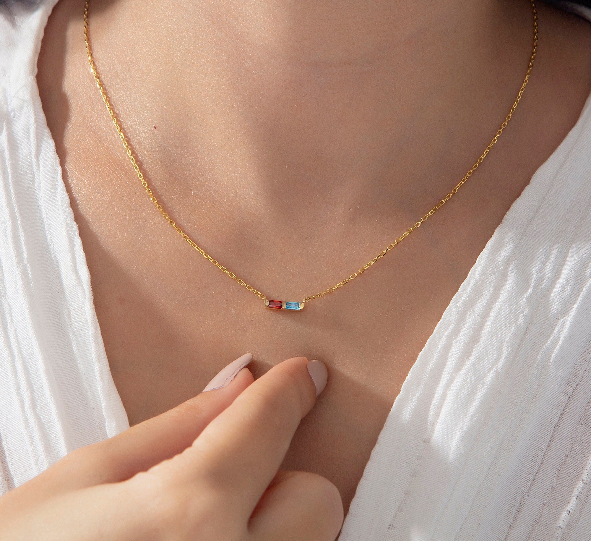 * Baguette Birthstone Necklace with your desired 1-2-3-4-5-6-7-8-9-10-11 or 12 birthstones; this family birthstone necklace makes perfect personalized gift♥