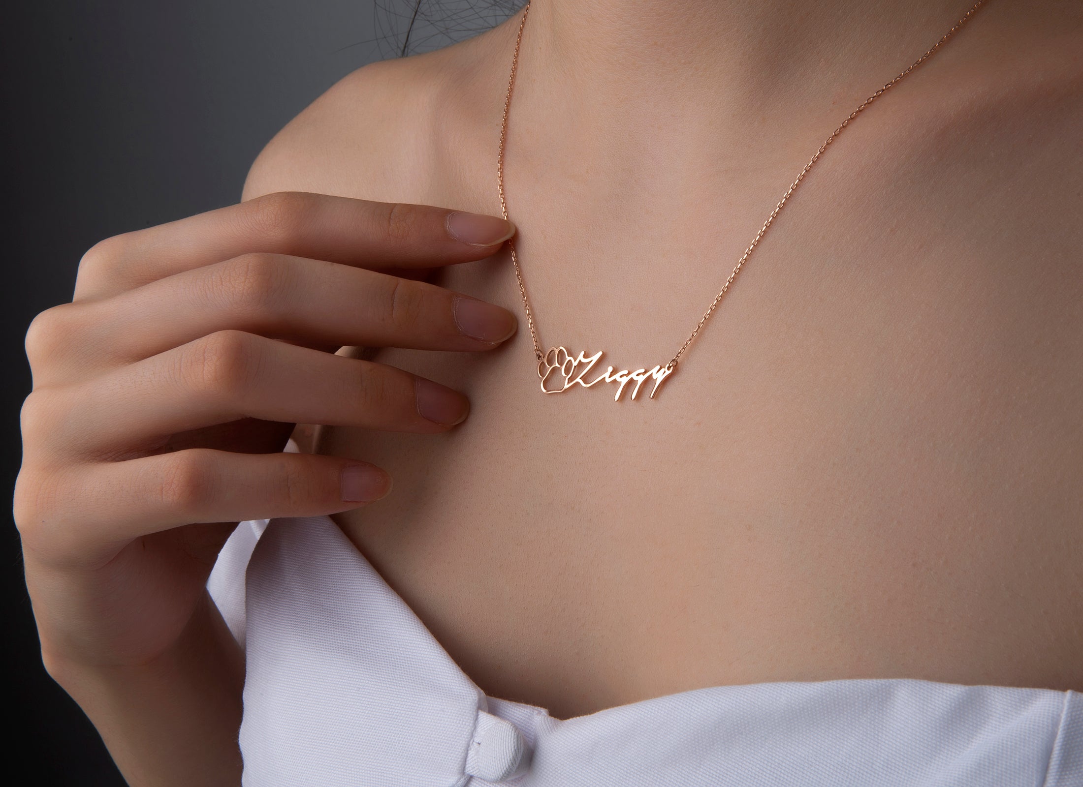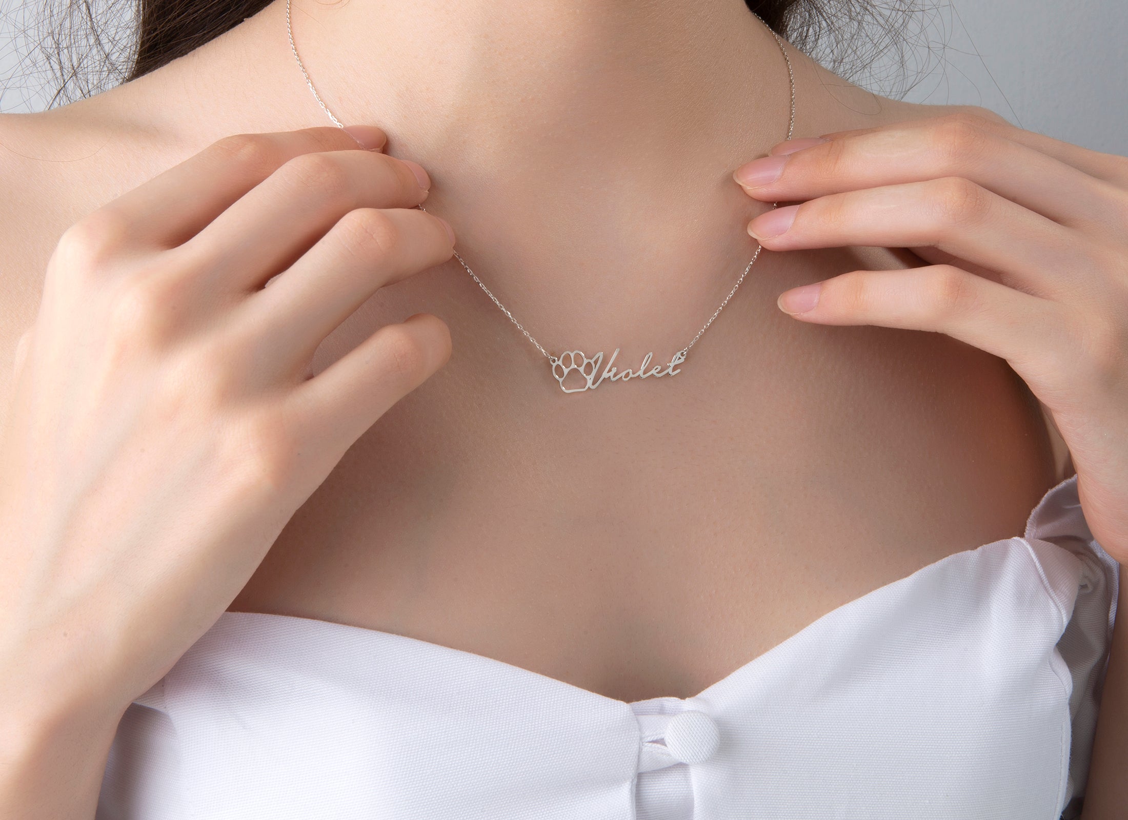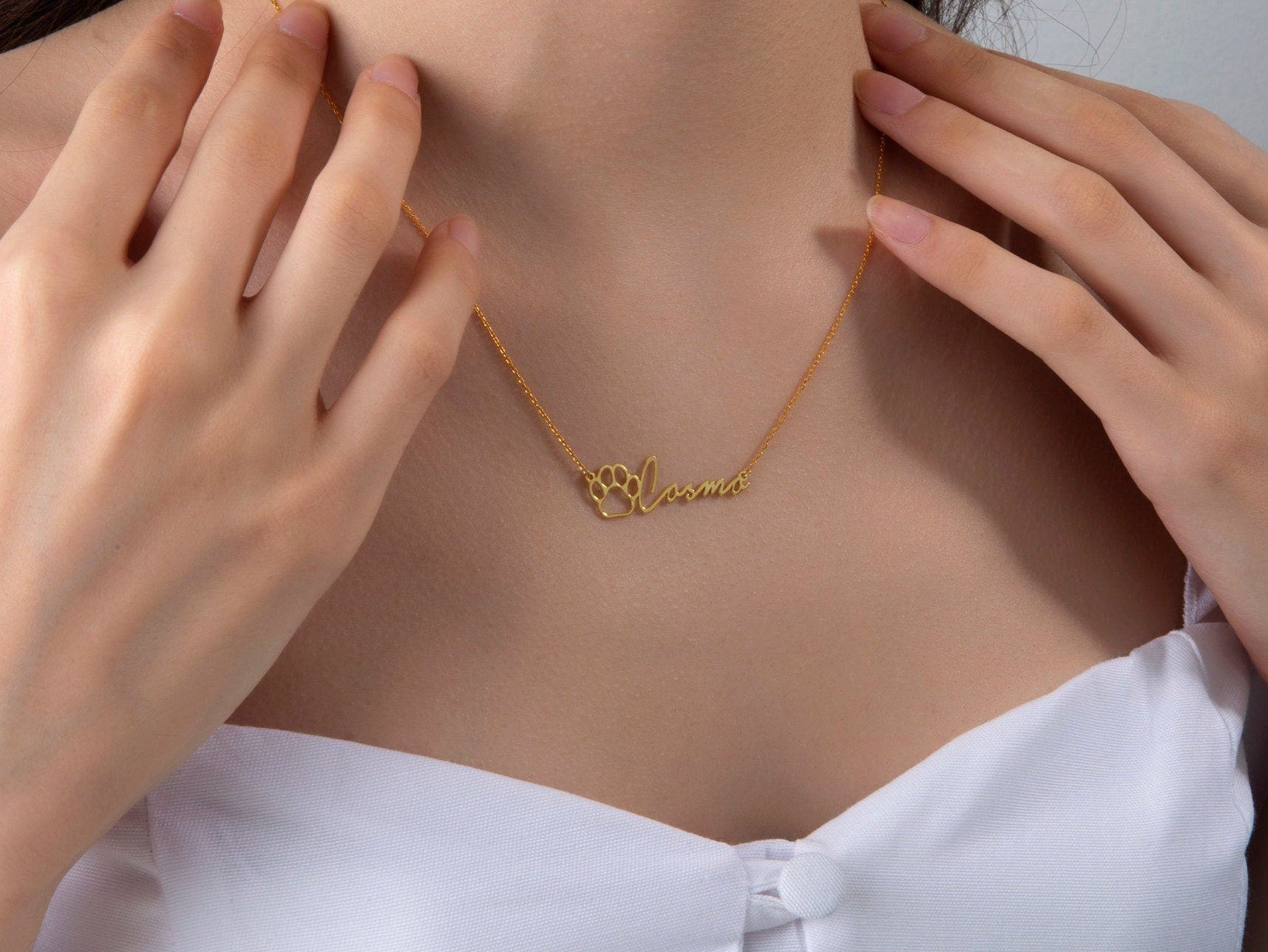Custom Pet Name Necklace with Paw Print – Animal Lover Jewelry