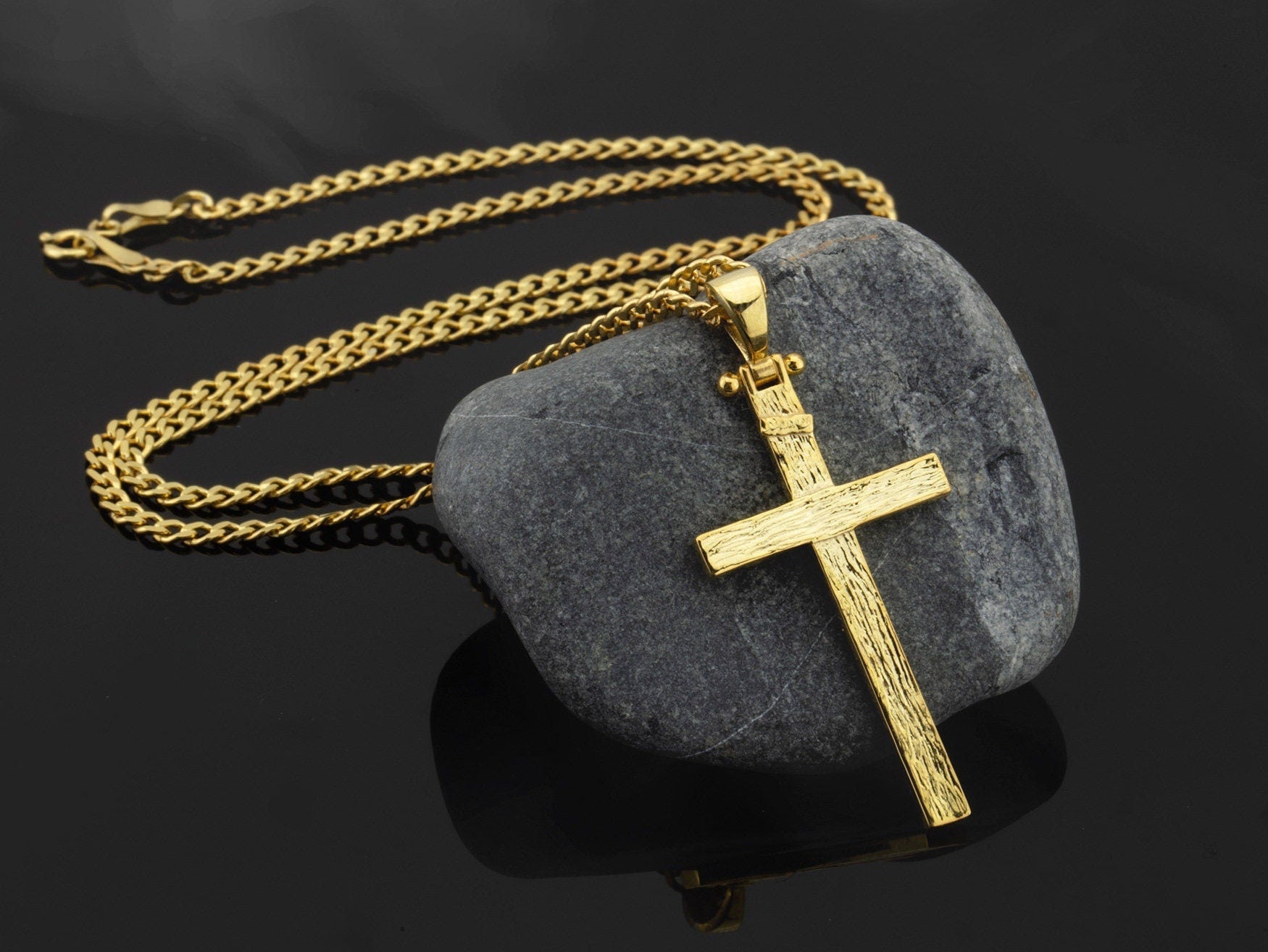 10K Solid Gold Cross Necklace For Men, 14K Gold Crucifix Cuban Chain Necklace, Gift For Men, Religious Jewelry, Unique Gift For Father's Day