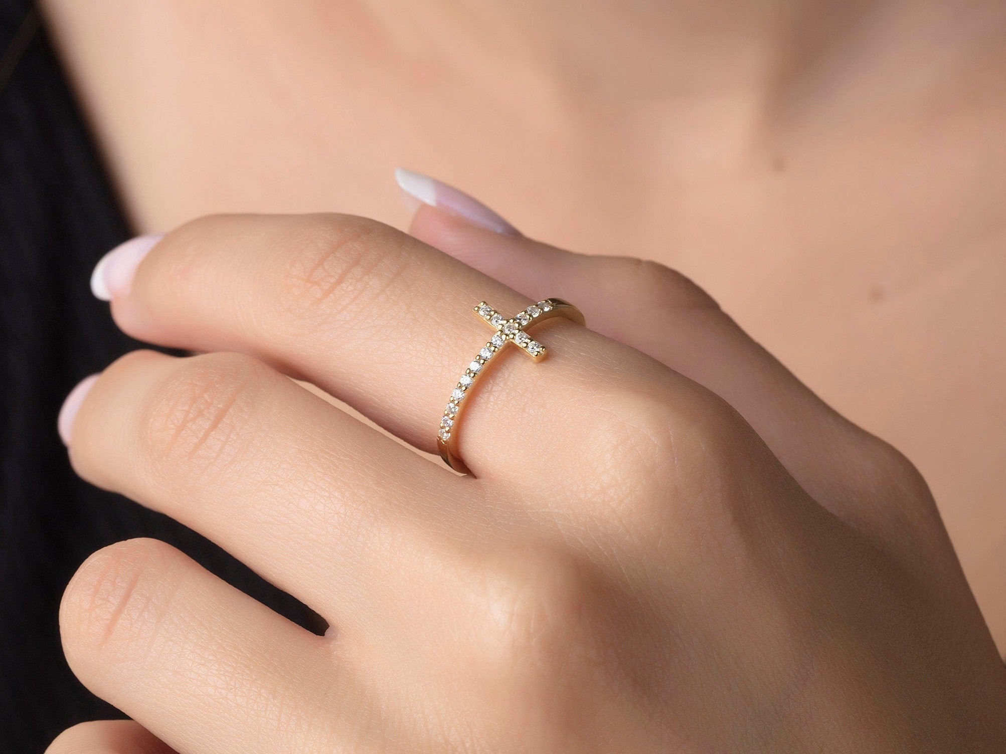 ♥ Dainty Zircon Diamond Cross Ring the most unique jewelry you can find...