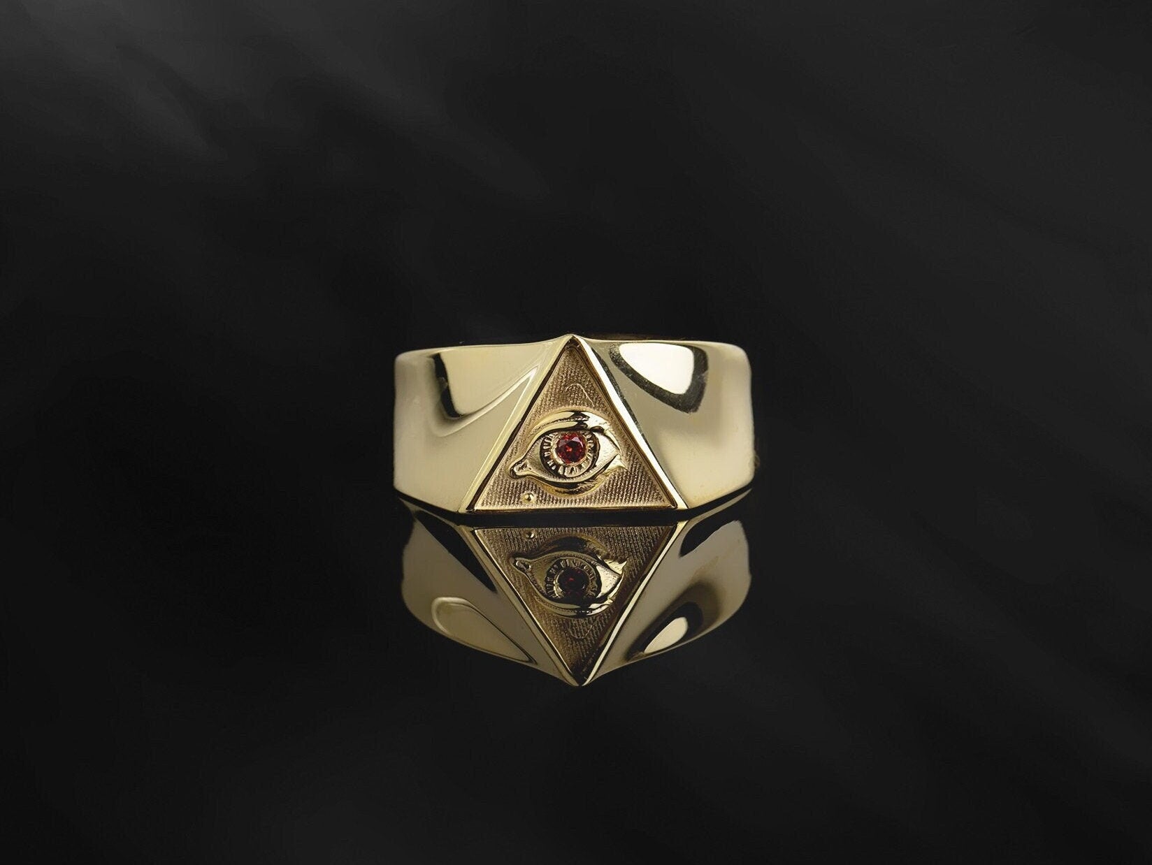 14K Gold Freemason Ring, Solid Gold Master Mason Ring, Freemasonry Ring, Knights Templar Ring, Illuminati Eye, Unique Gift For Father's Day
