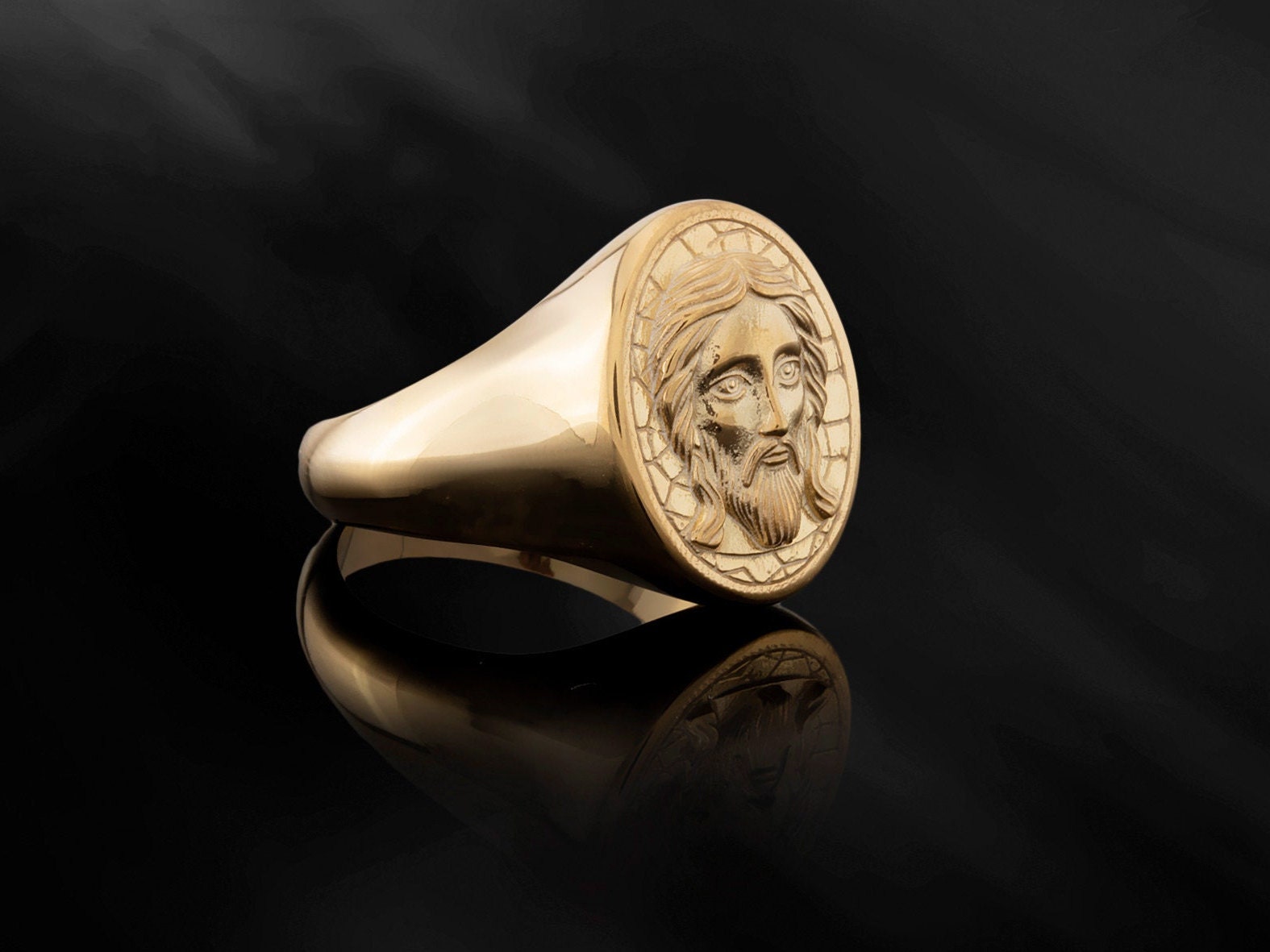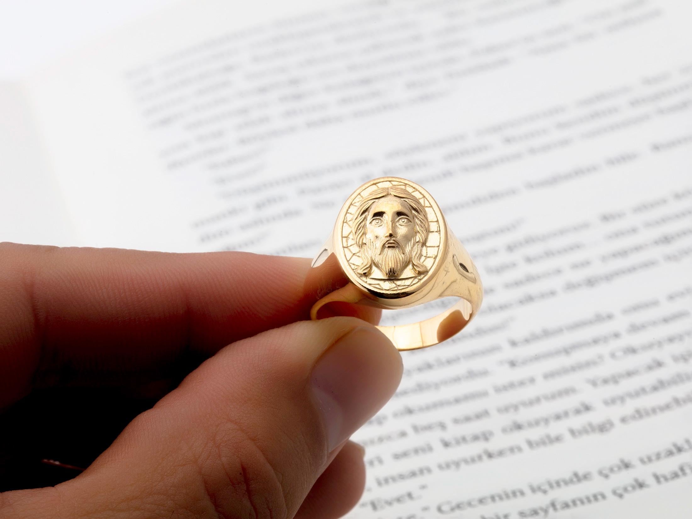 14K Solid Gold Christ Jesus Man Ring, 10K Jesus Statement Rings for Men, Gifts For Men, 18K Religious Rings, Unique Gift For Father's Day