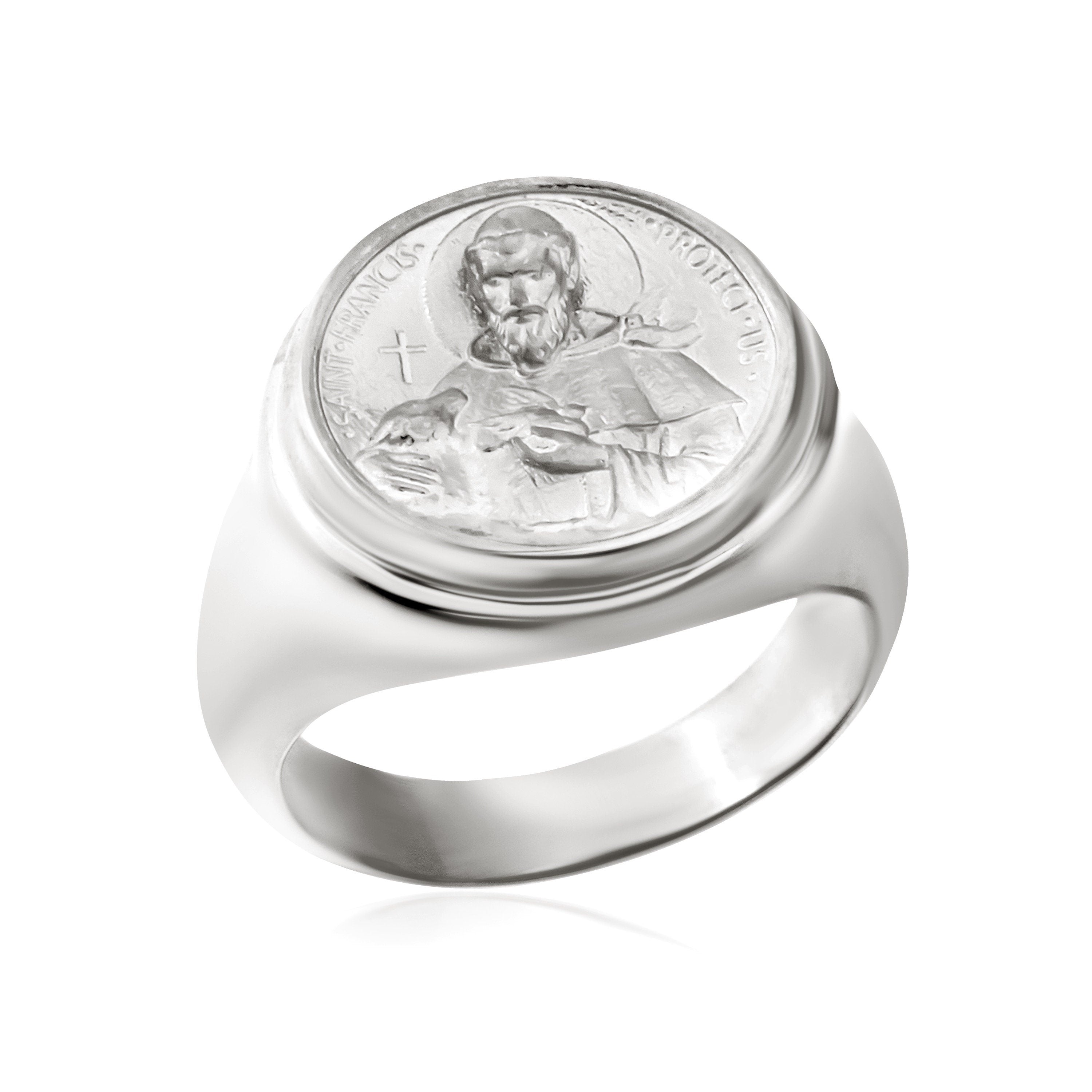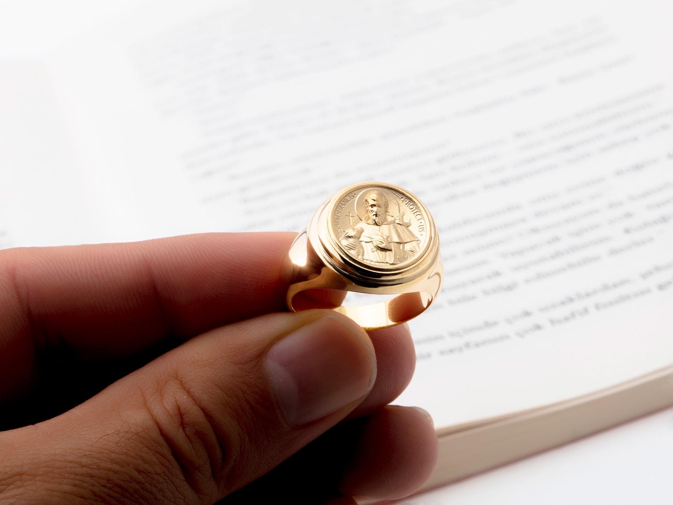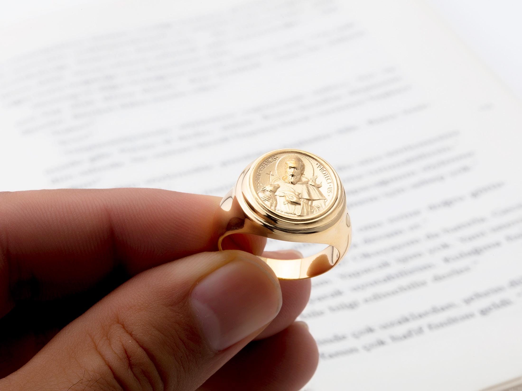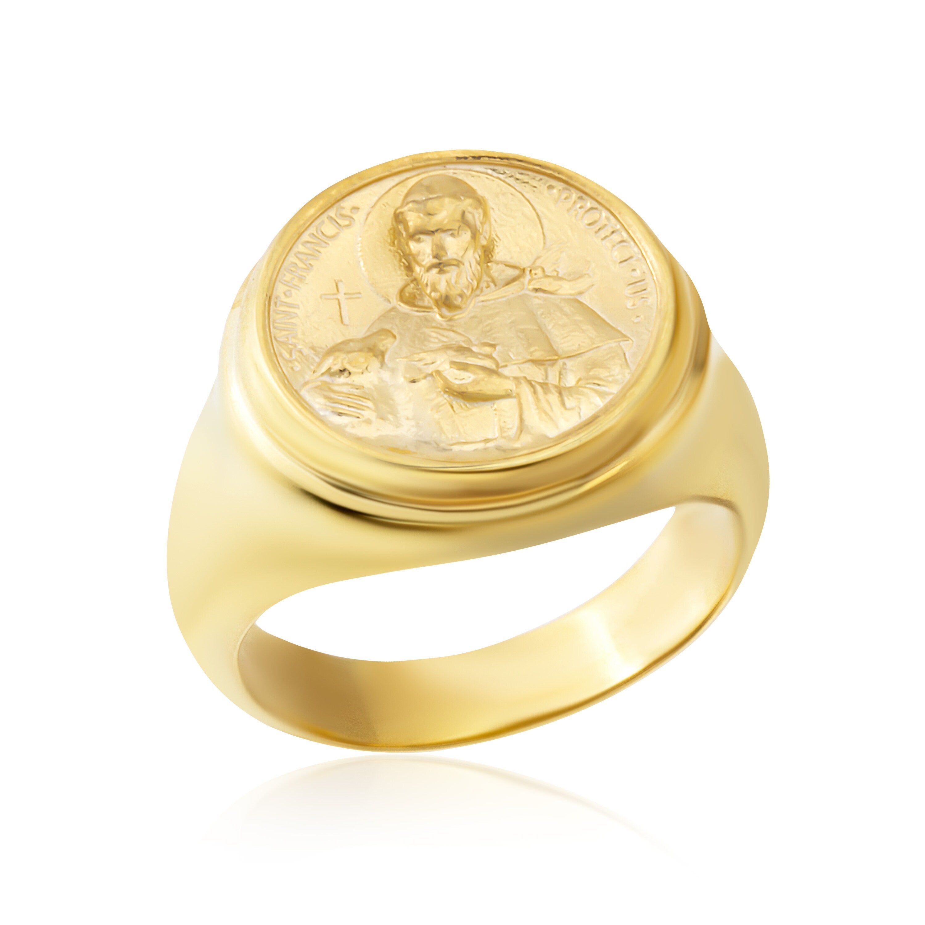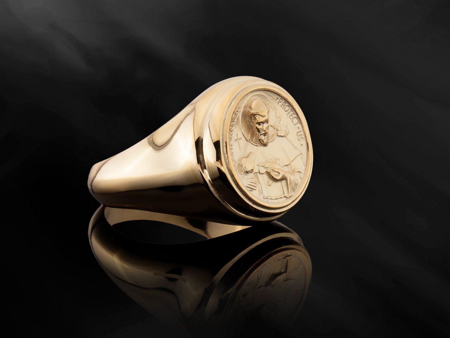 14K Solid Gold Saint Francis Ring, 18K Religious Statement Ring, Catholic Men's Rings, St Francis Signet Ring, Unique Gift For Father's Day