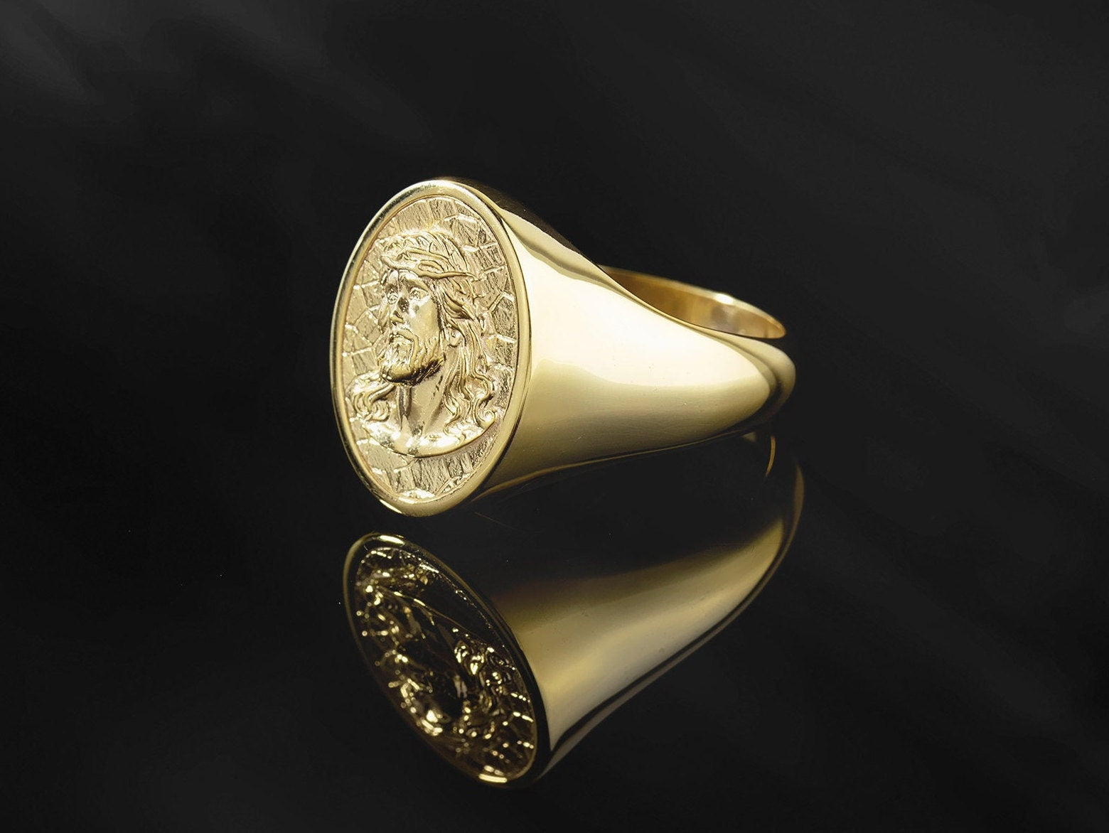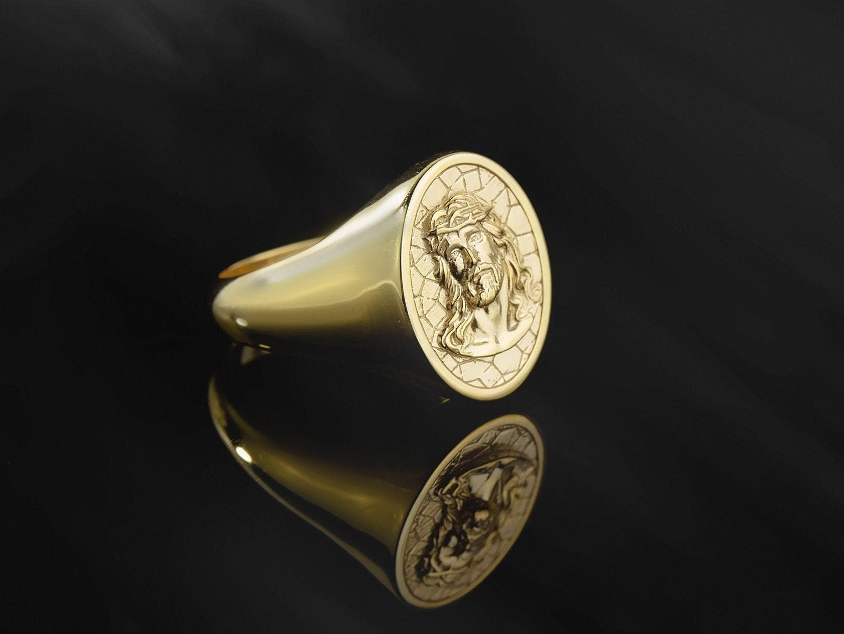 18K Gold Relief Jesus Christ Rings, 14K Gold Savior Crowned Messiah Rings, Religious Christian Men's Jewelry, Unique Gift For Father's Day