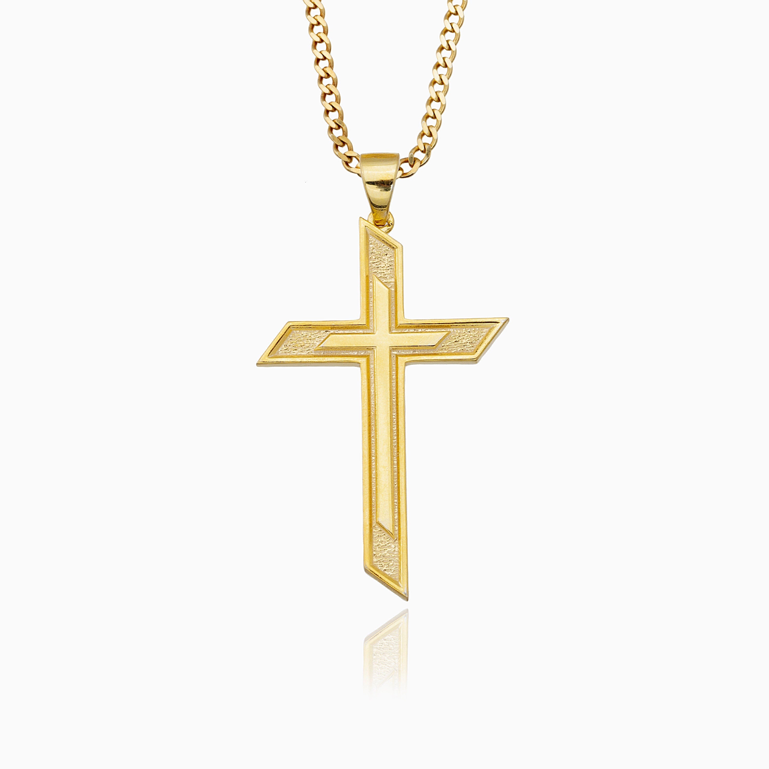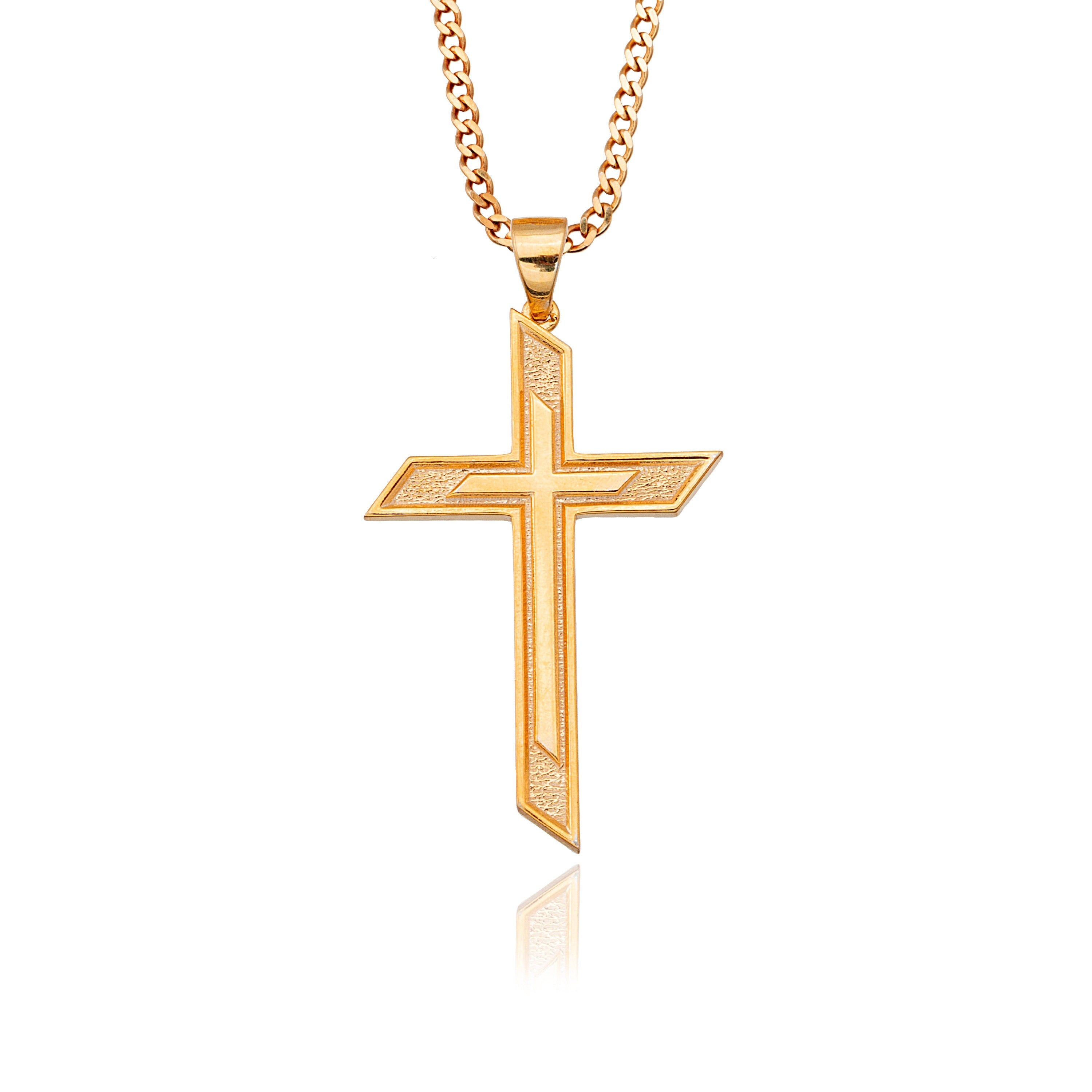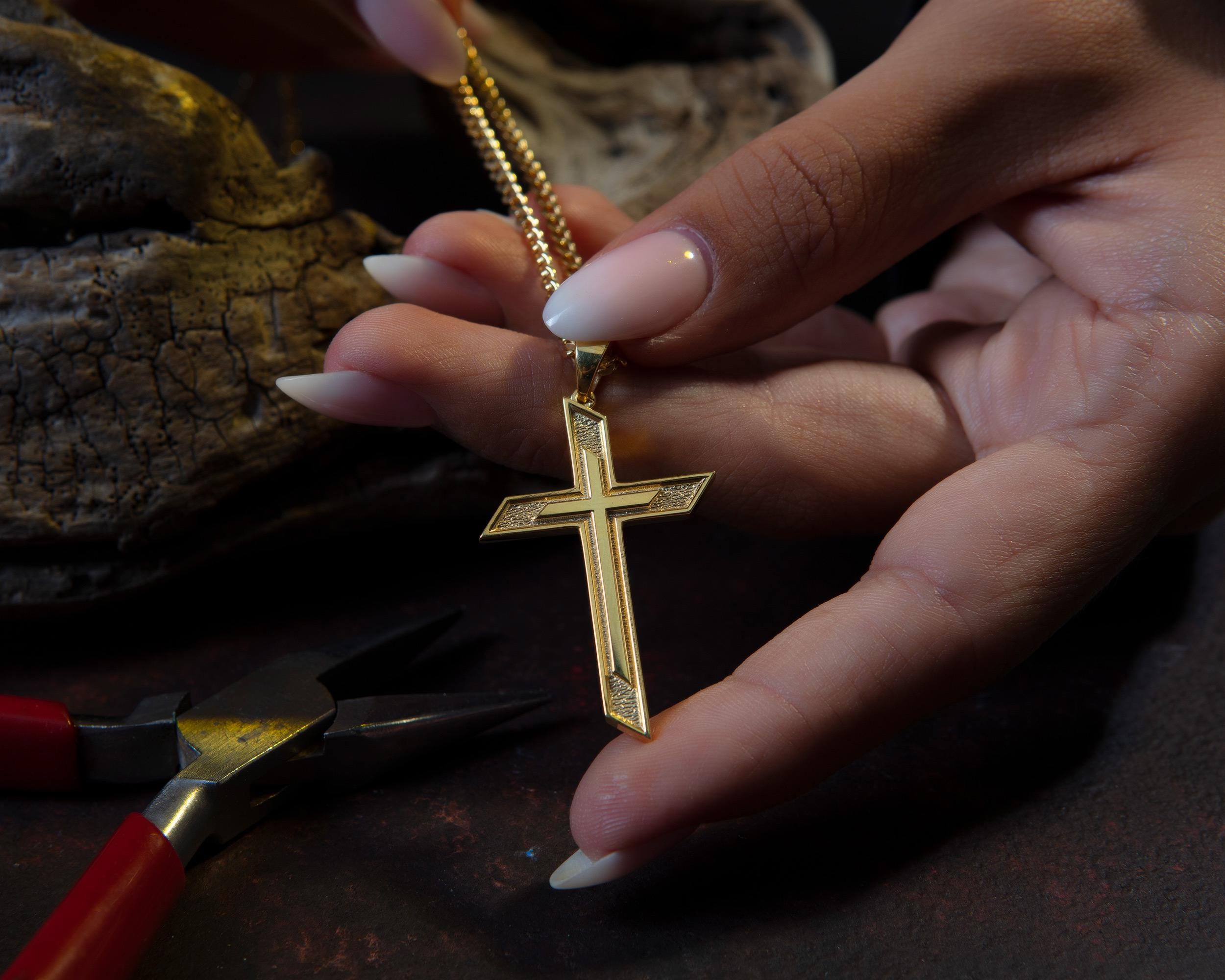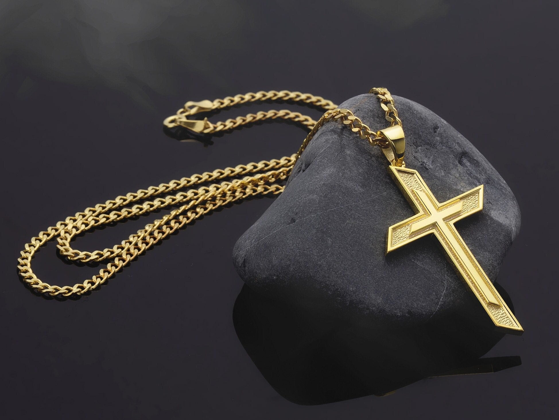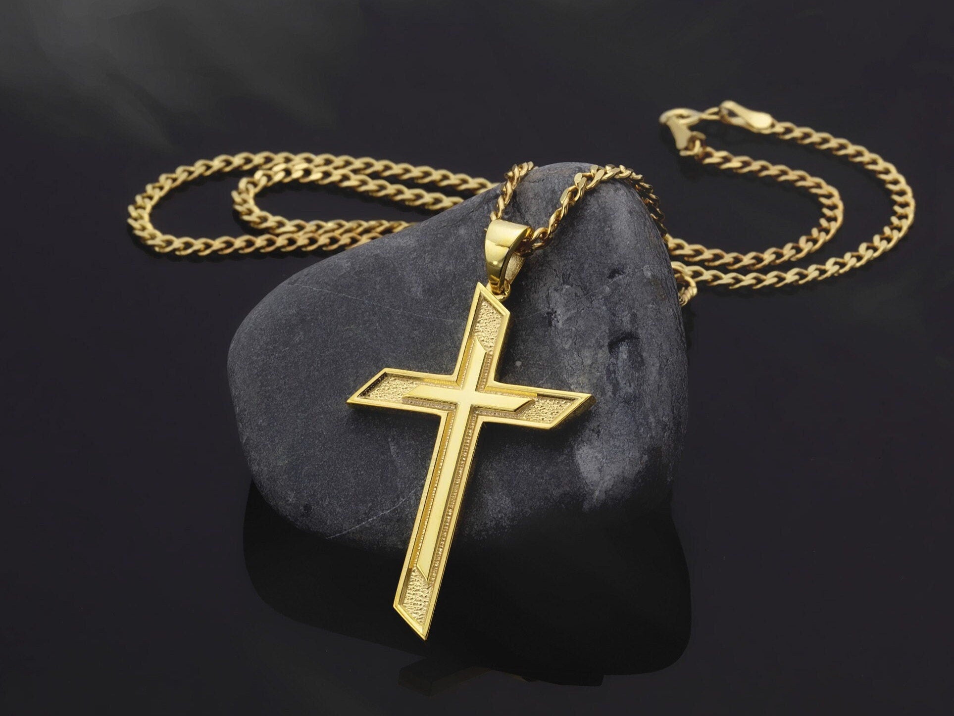 18K Solid Gold Cross Necklace For Men, Gold Cross Cuban Chain Necklace, Crucifix Necklaces, Religious Jewelry, Unique Gift For Father's Day