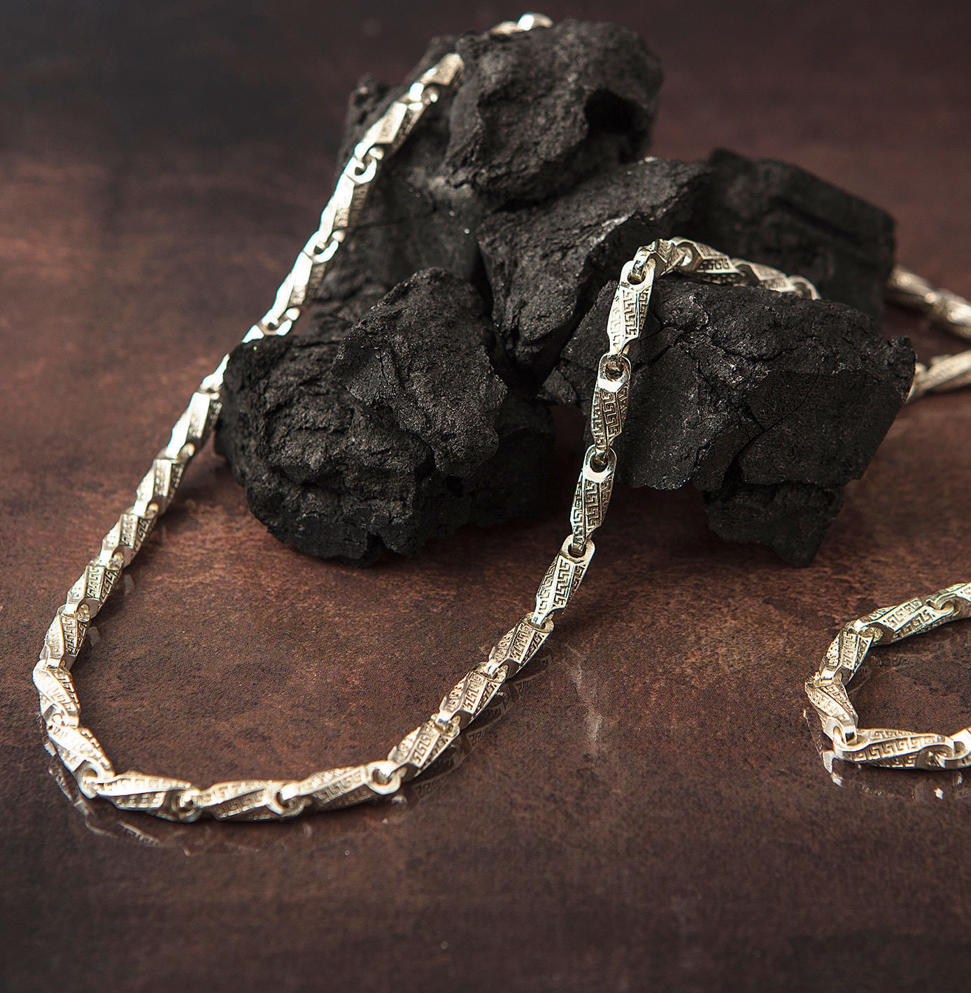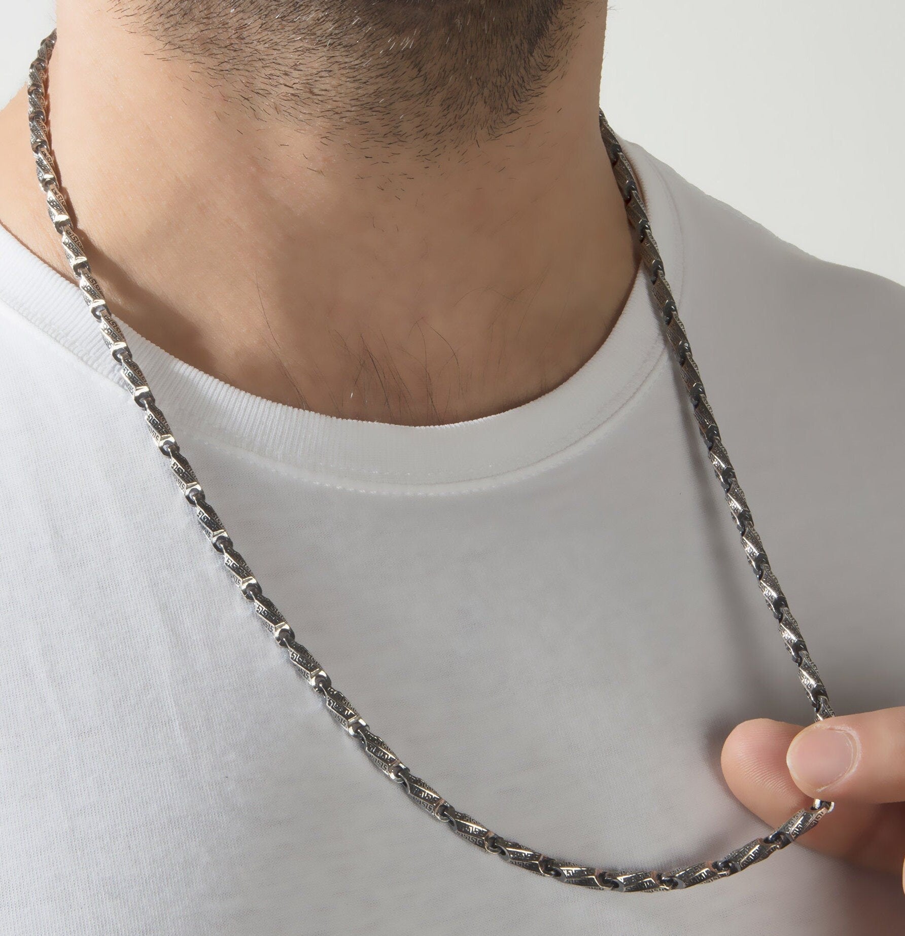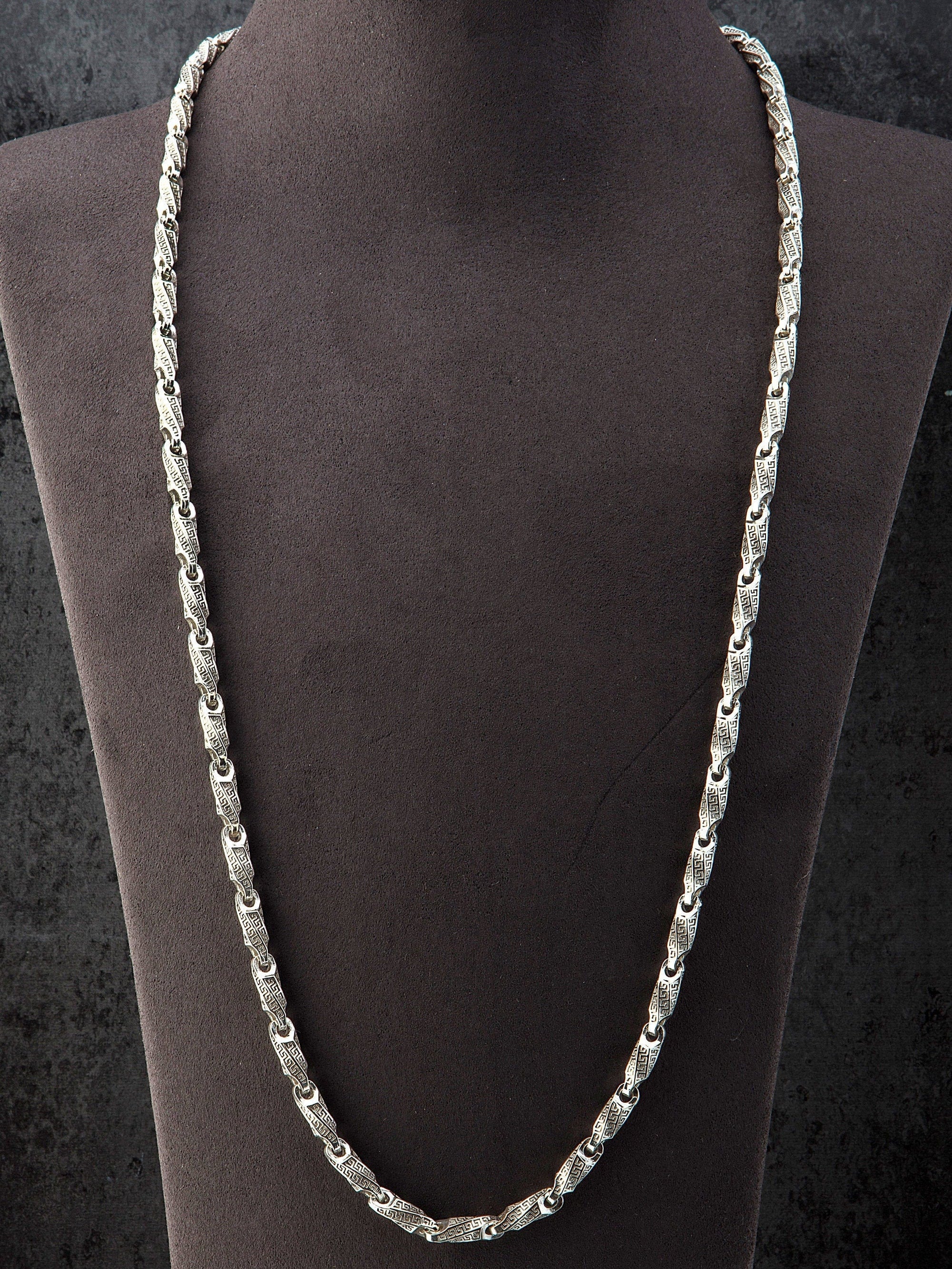 This 925 Sterling Silver chain necklace, with an aged finish, features stylish engraving details.