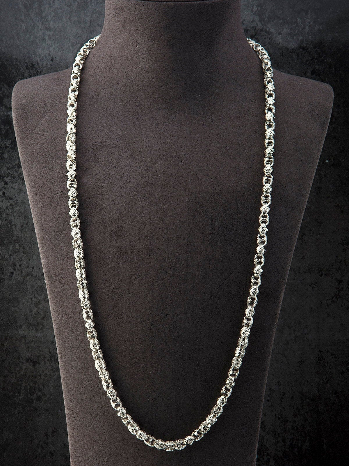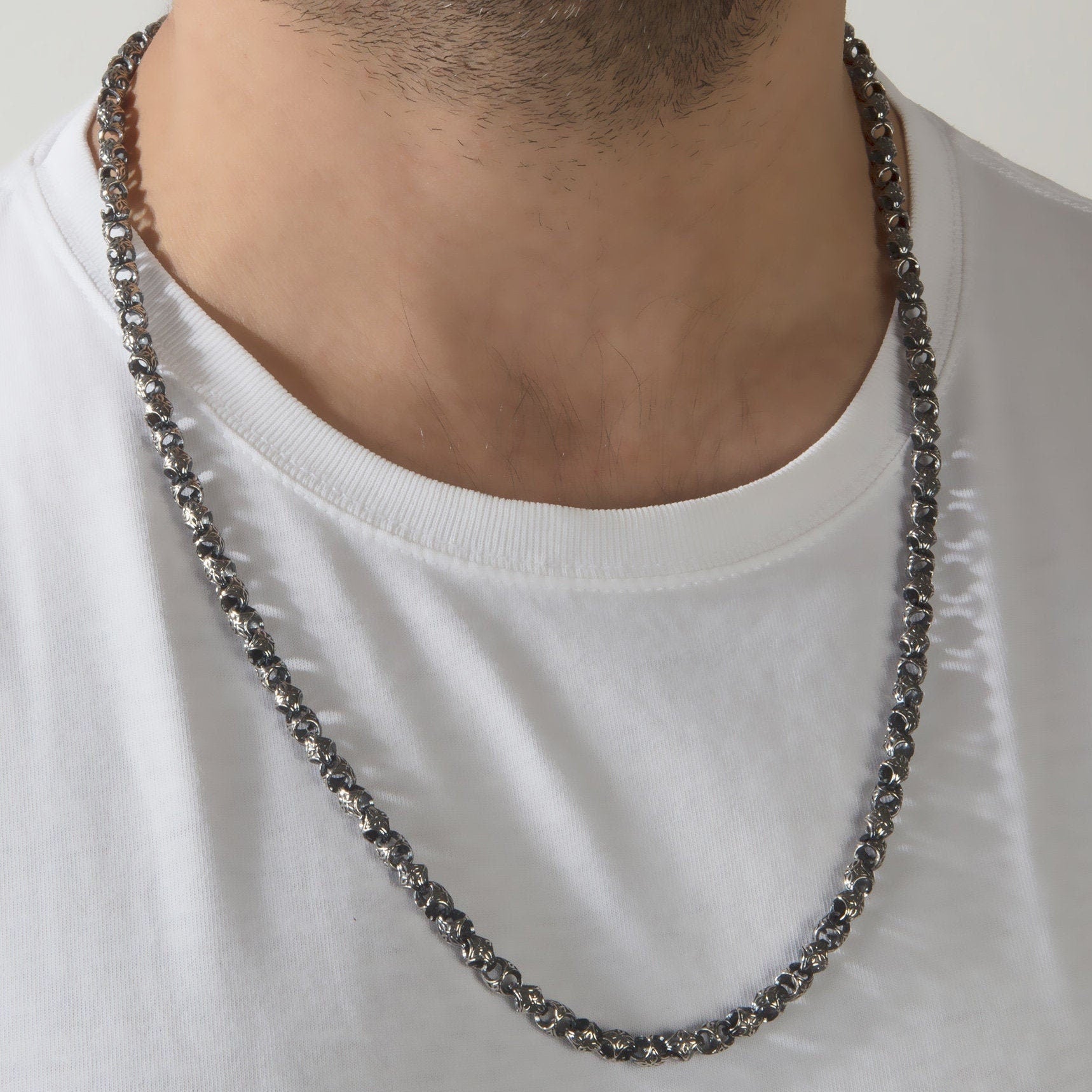 This 925 Sterling Silver chain necklace, with an aged finish, features stylish engraving details.