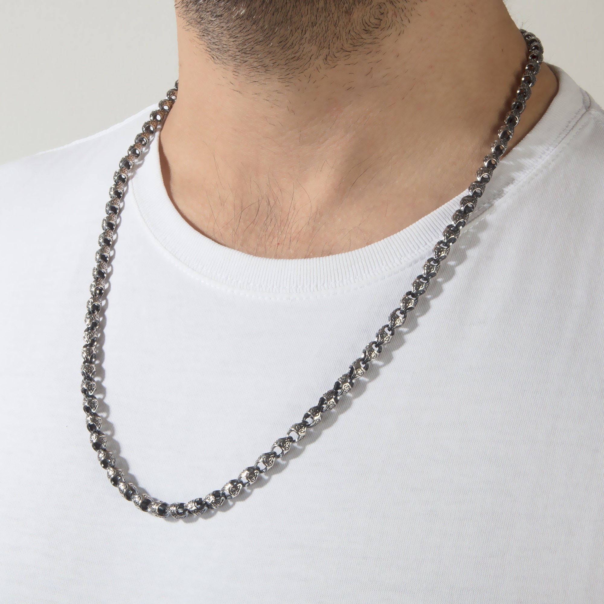This 925 Sterling Silver chain necklace, with an aged finish, features stylish engraving details.