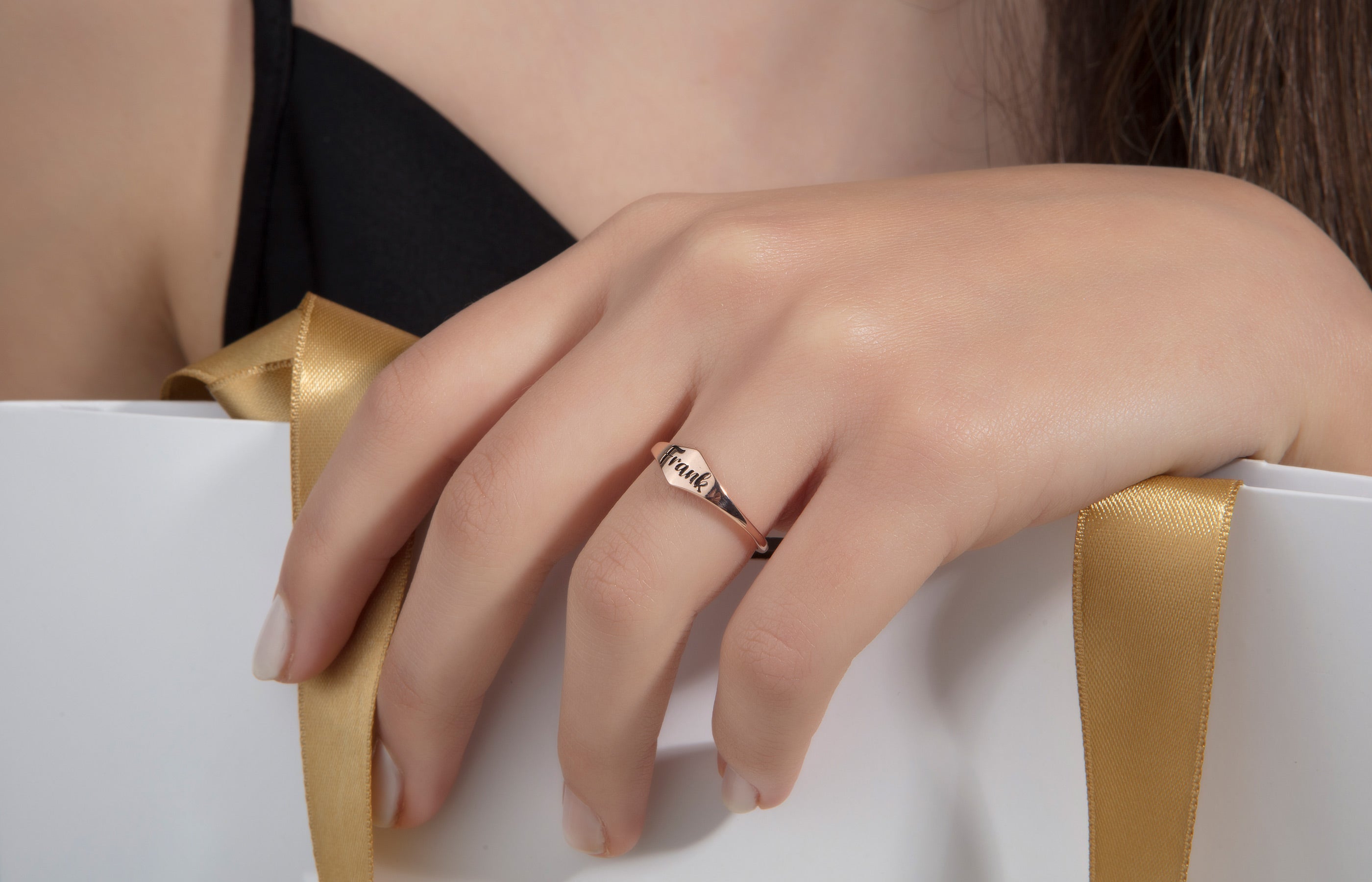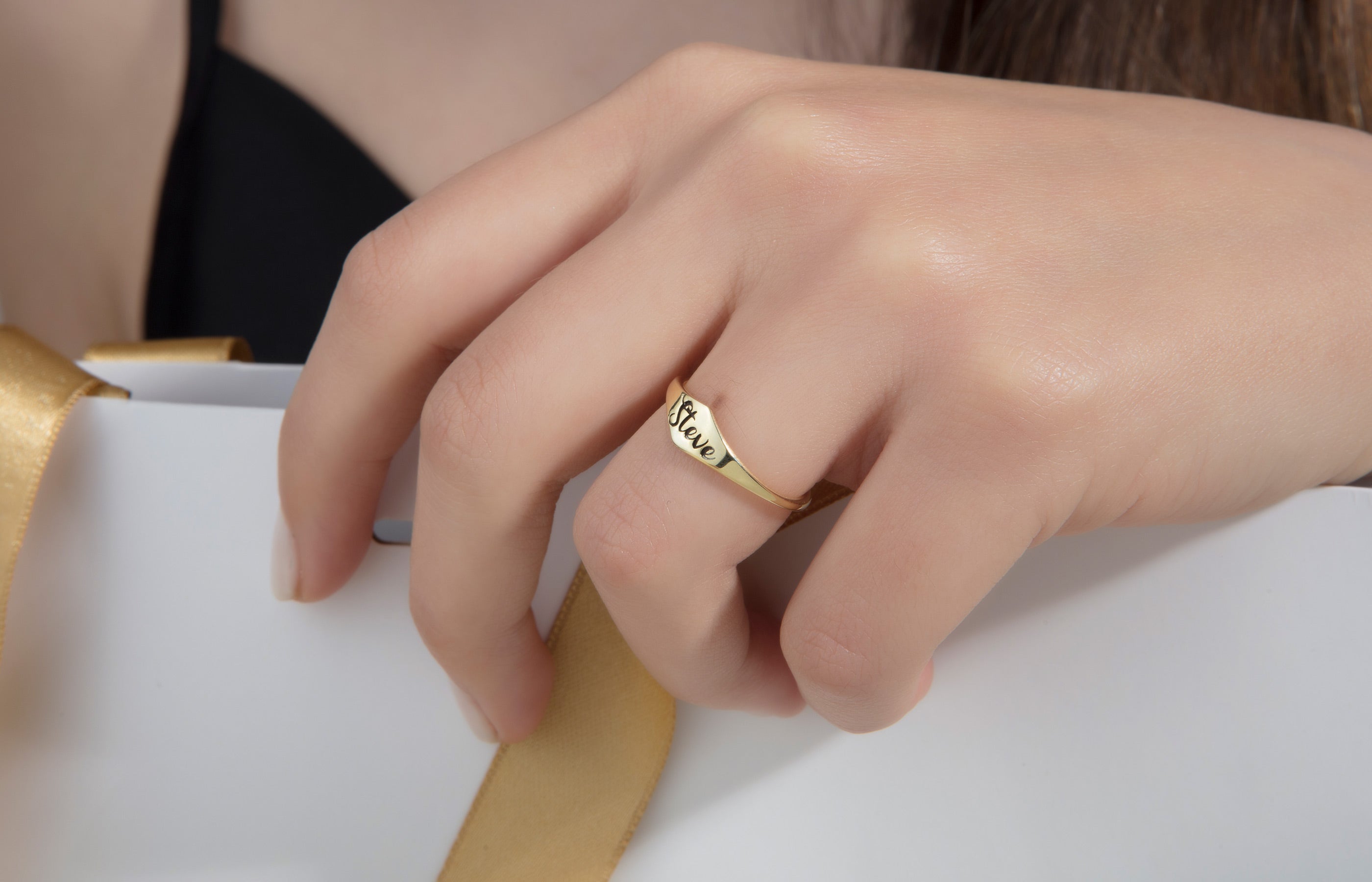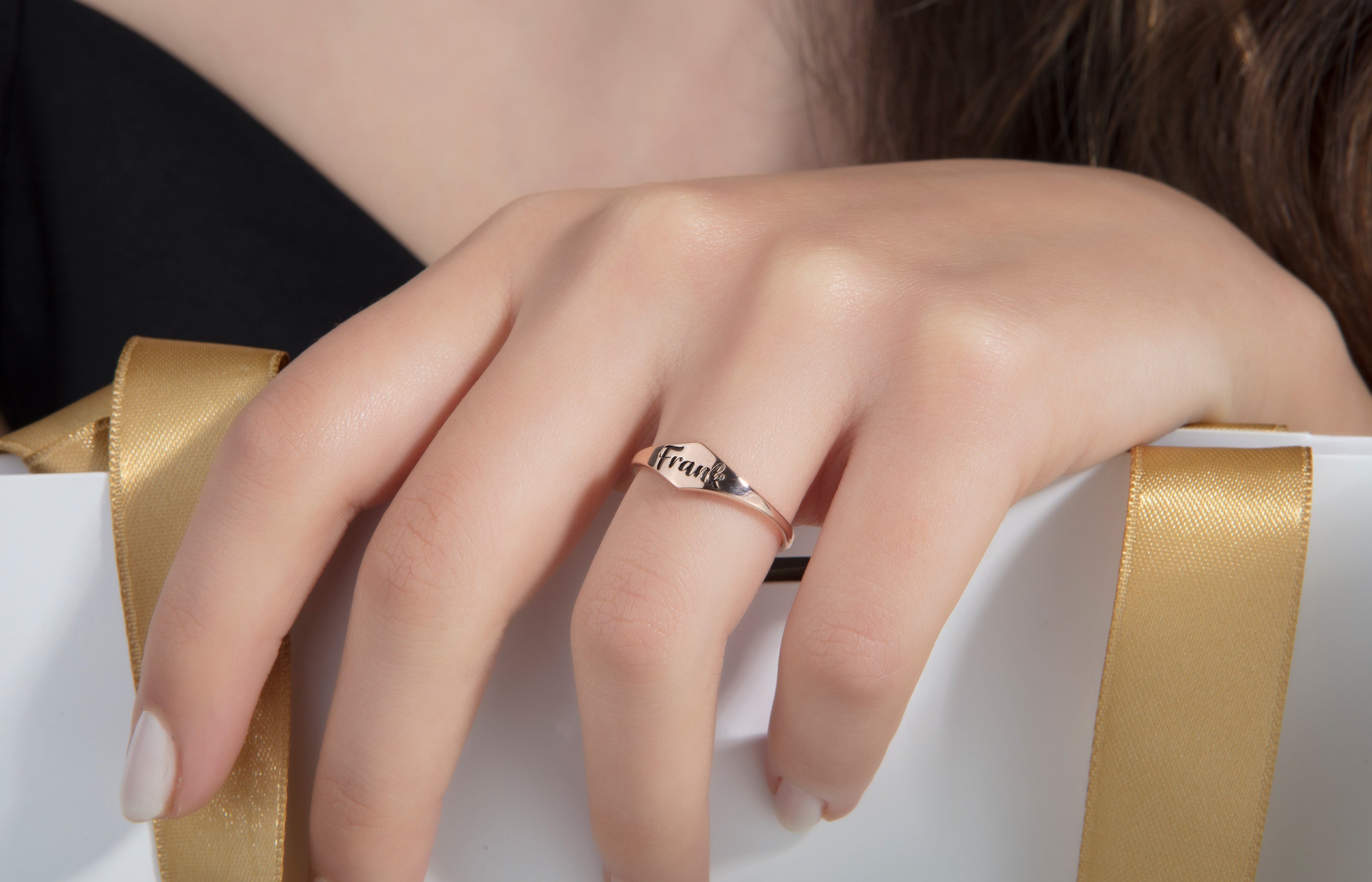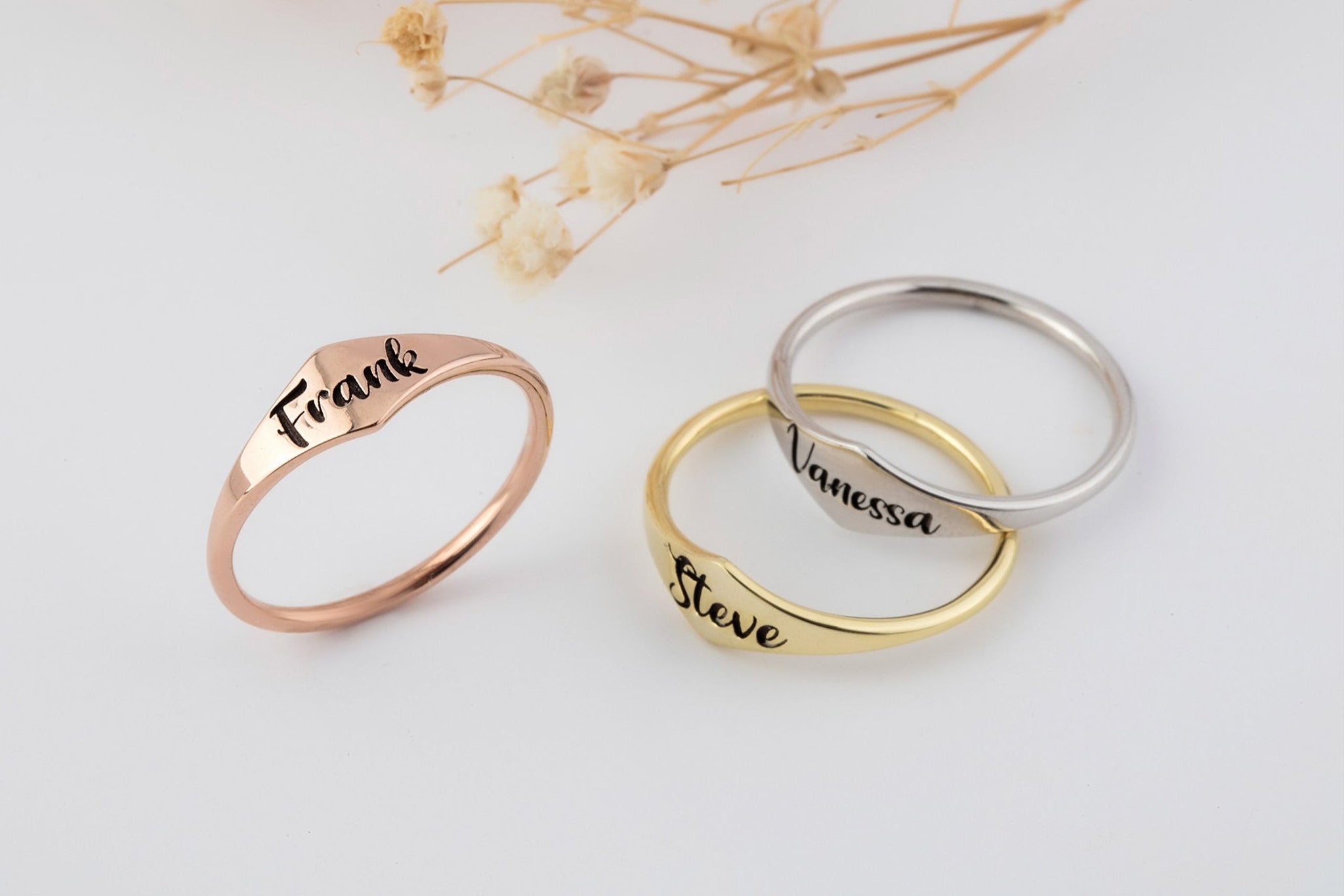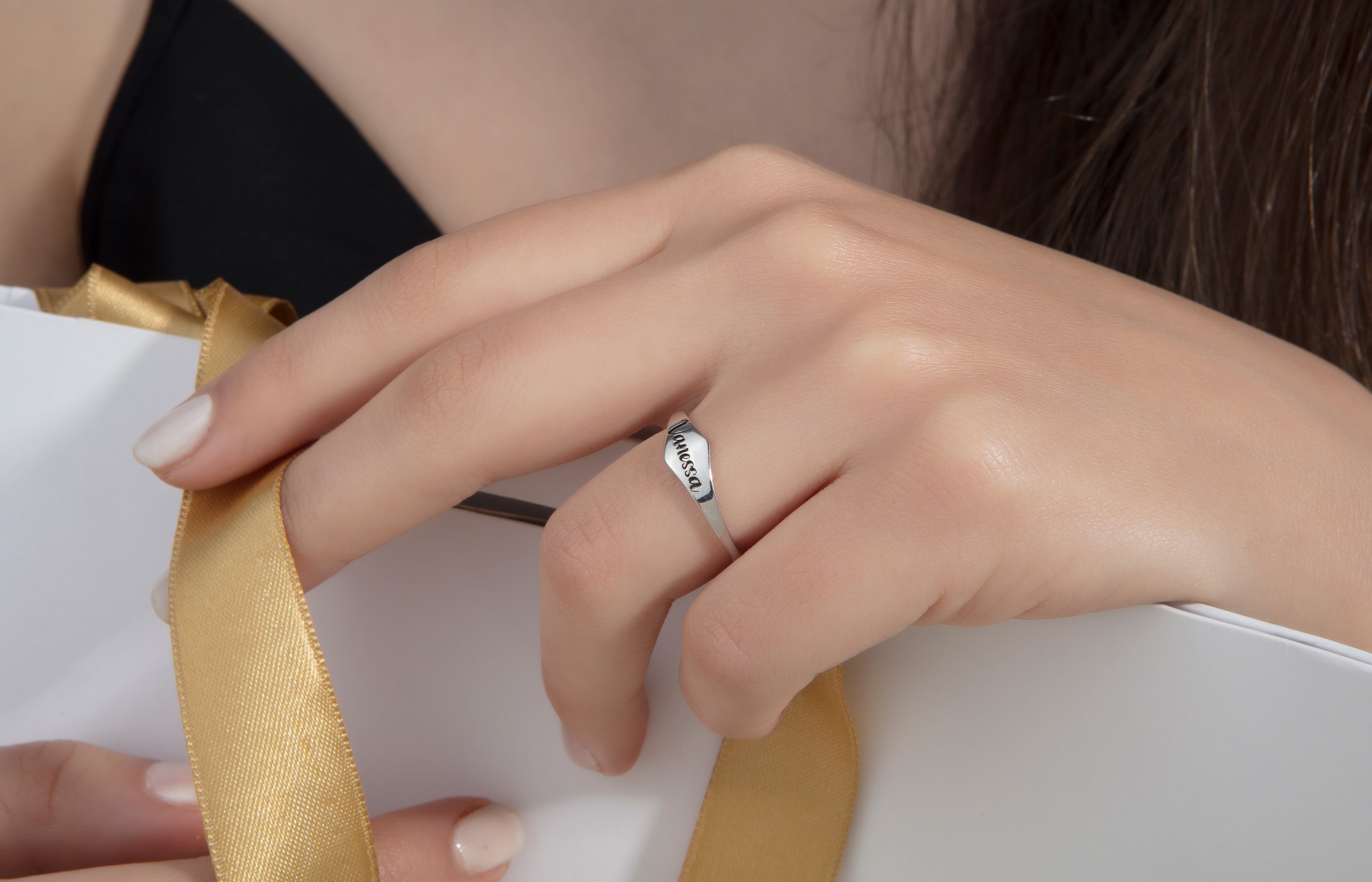 Make your jewelry truly yours with our custom engraved name ring. Each piece is carefully handcrafted in our workshop and personalized with the name of your choice, creating a timeless and meaningful keepsake.