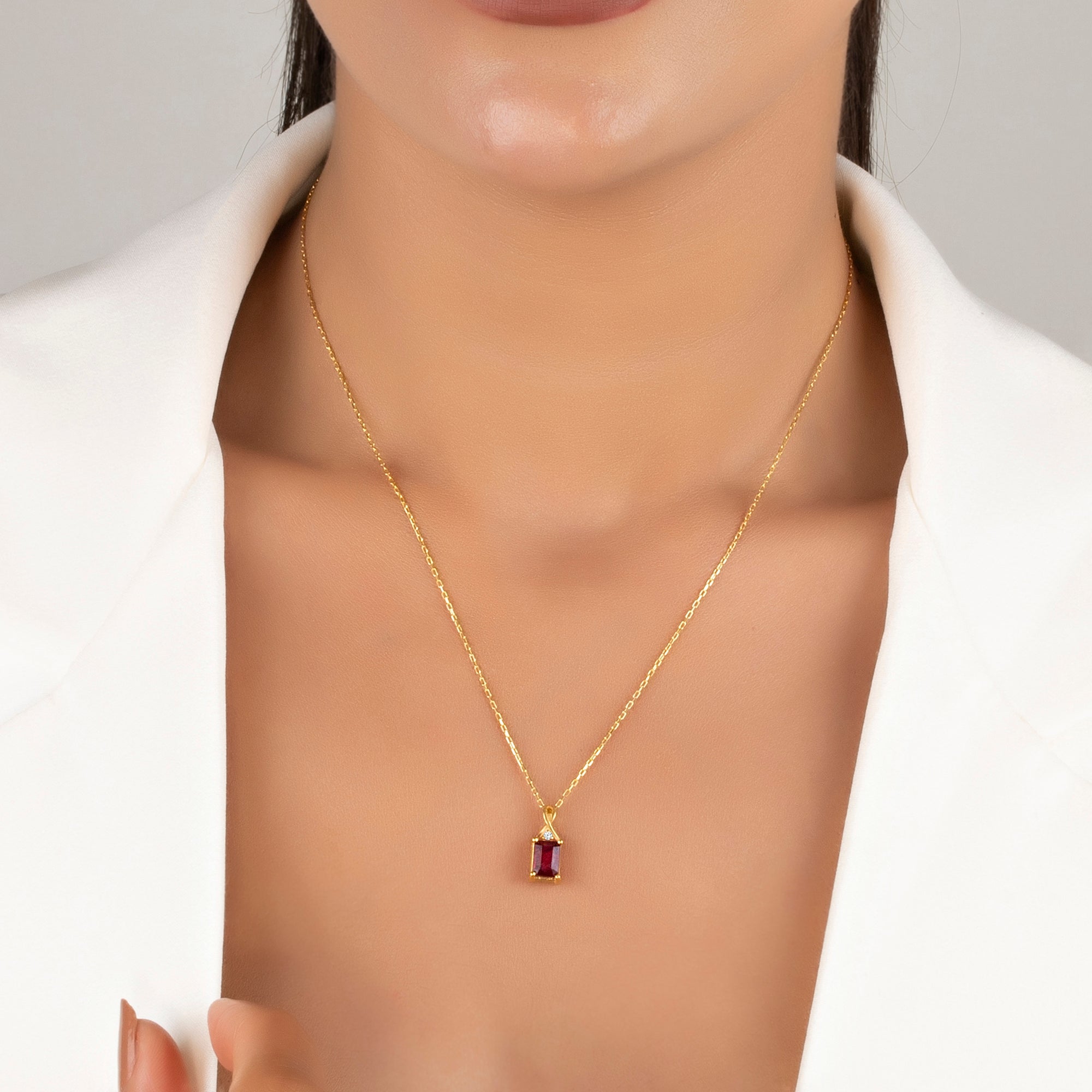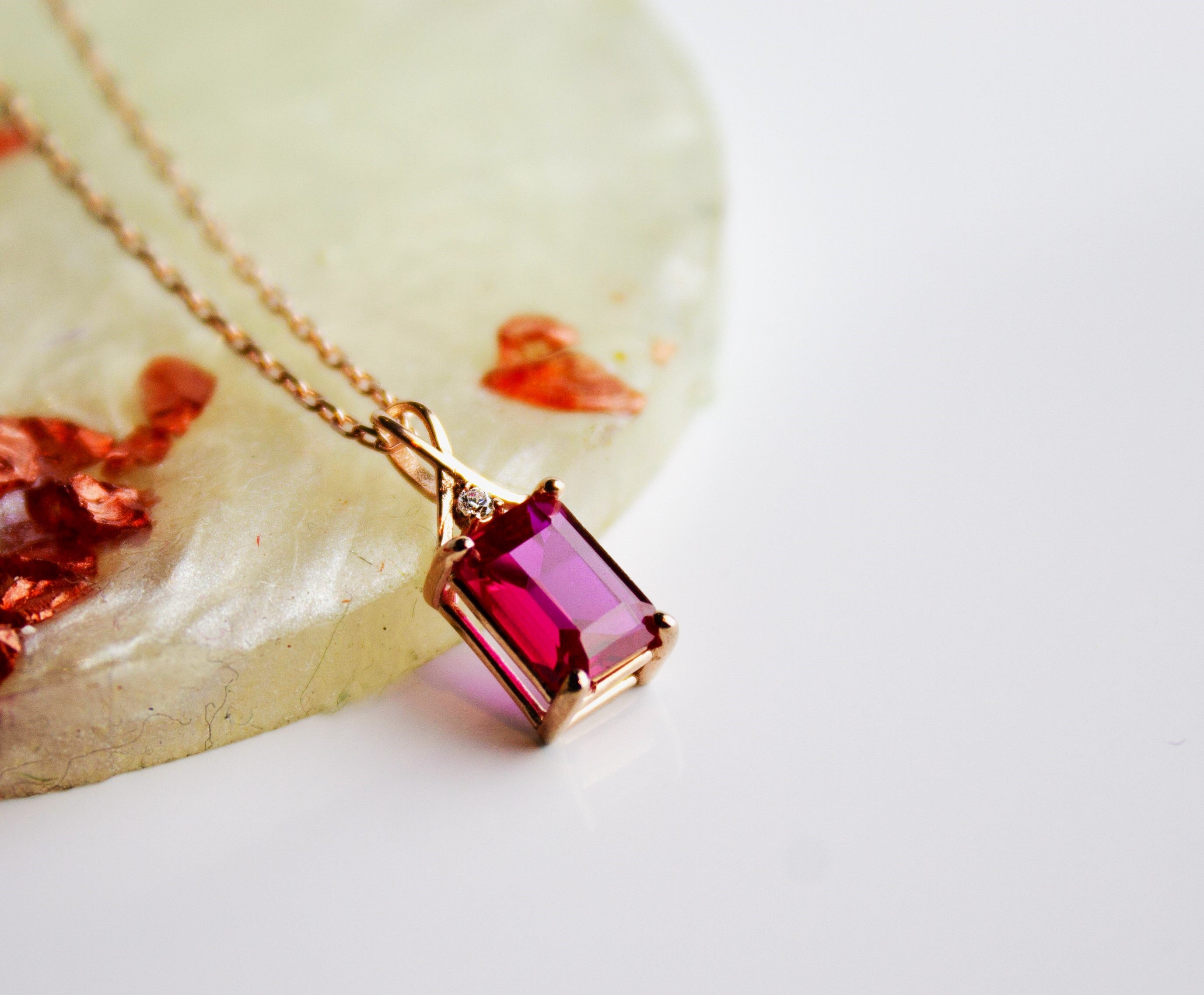 Dainty Ruby Necklace with Natural Diamond - Emerald Cut July Birthstone Gift