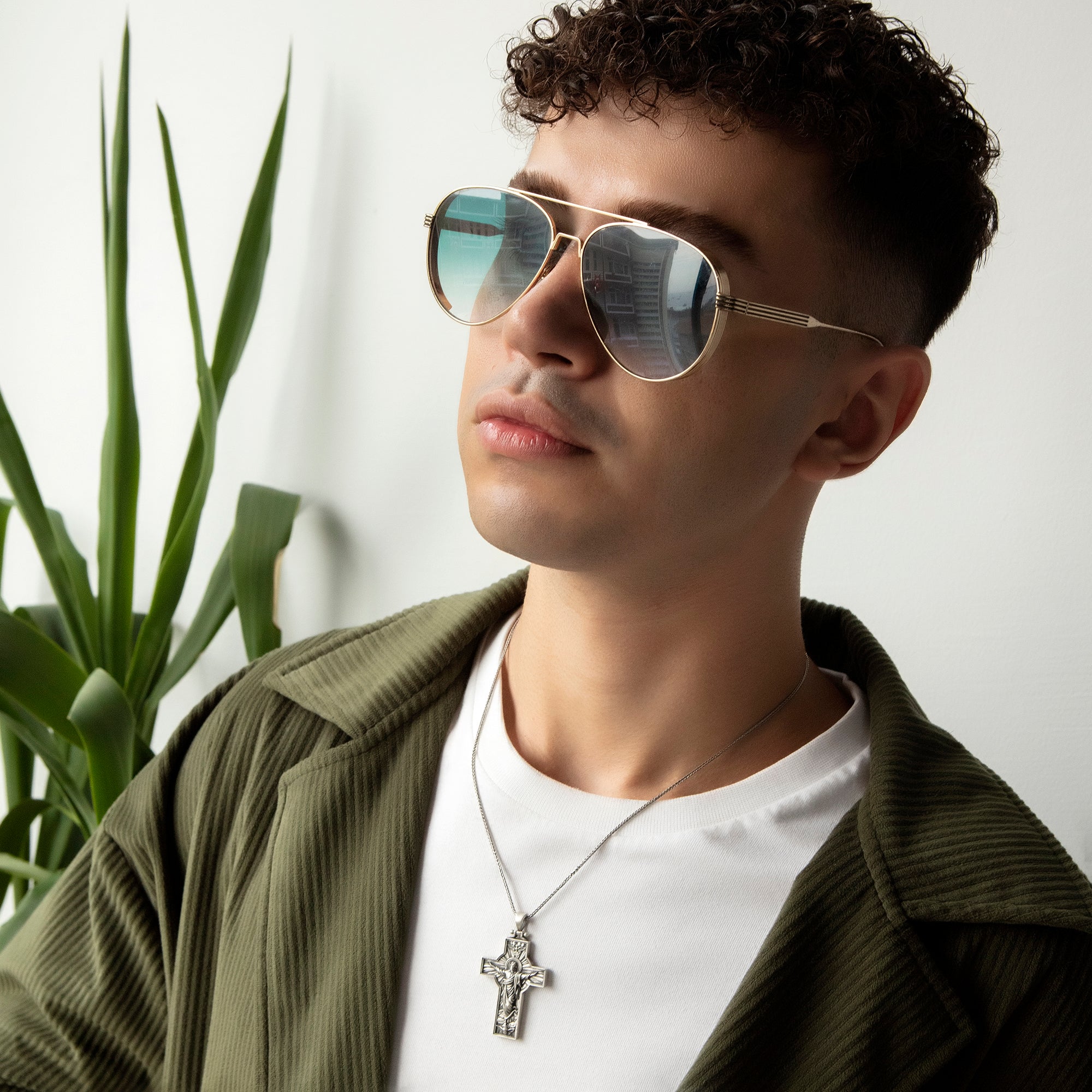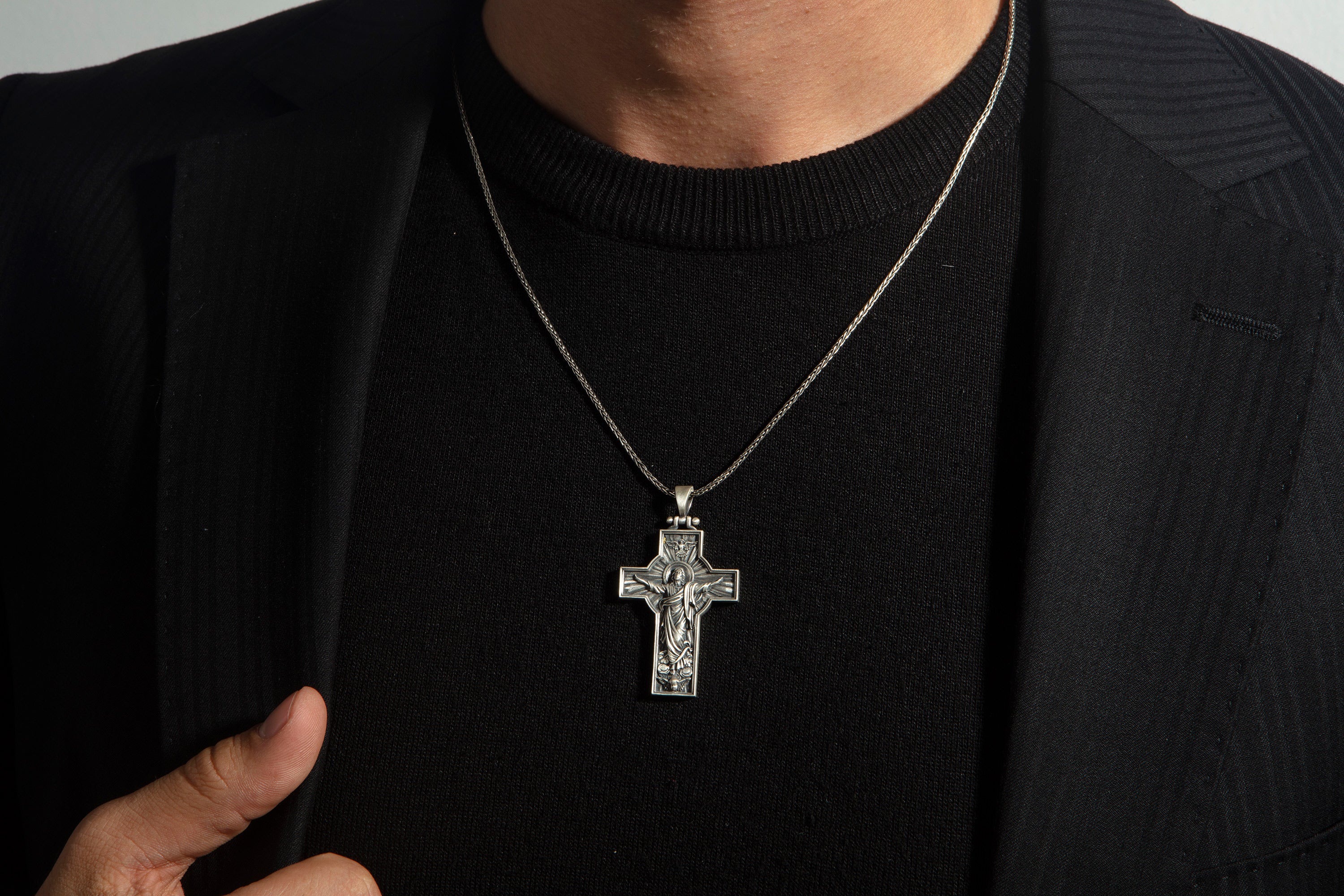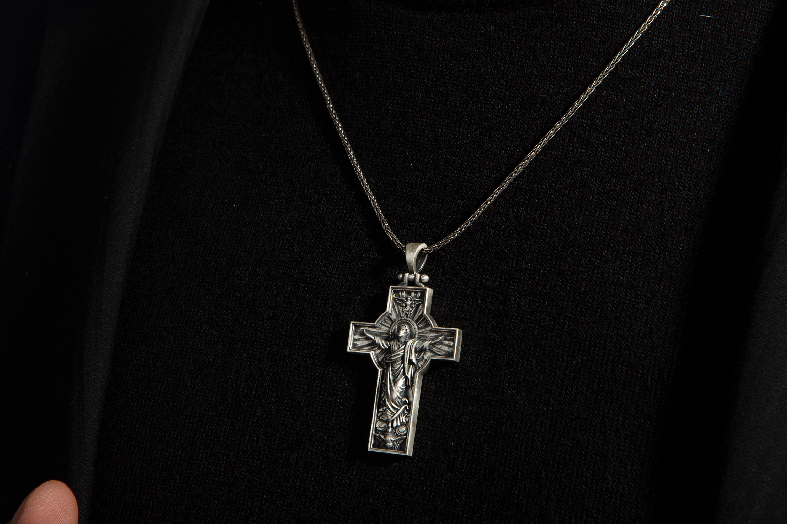 Sterling Silver Jesus Cross Necklace for Men - Risen Jesus Pendant
