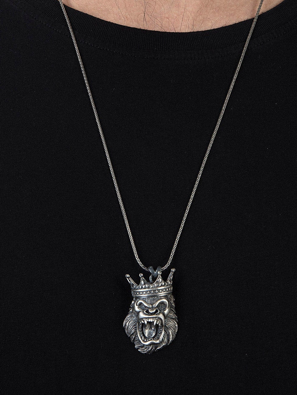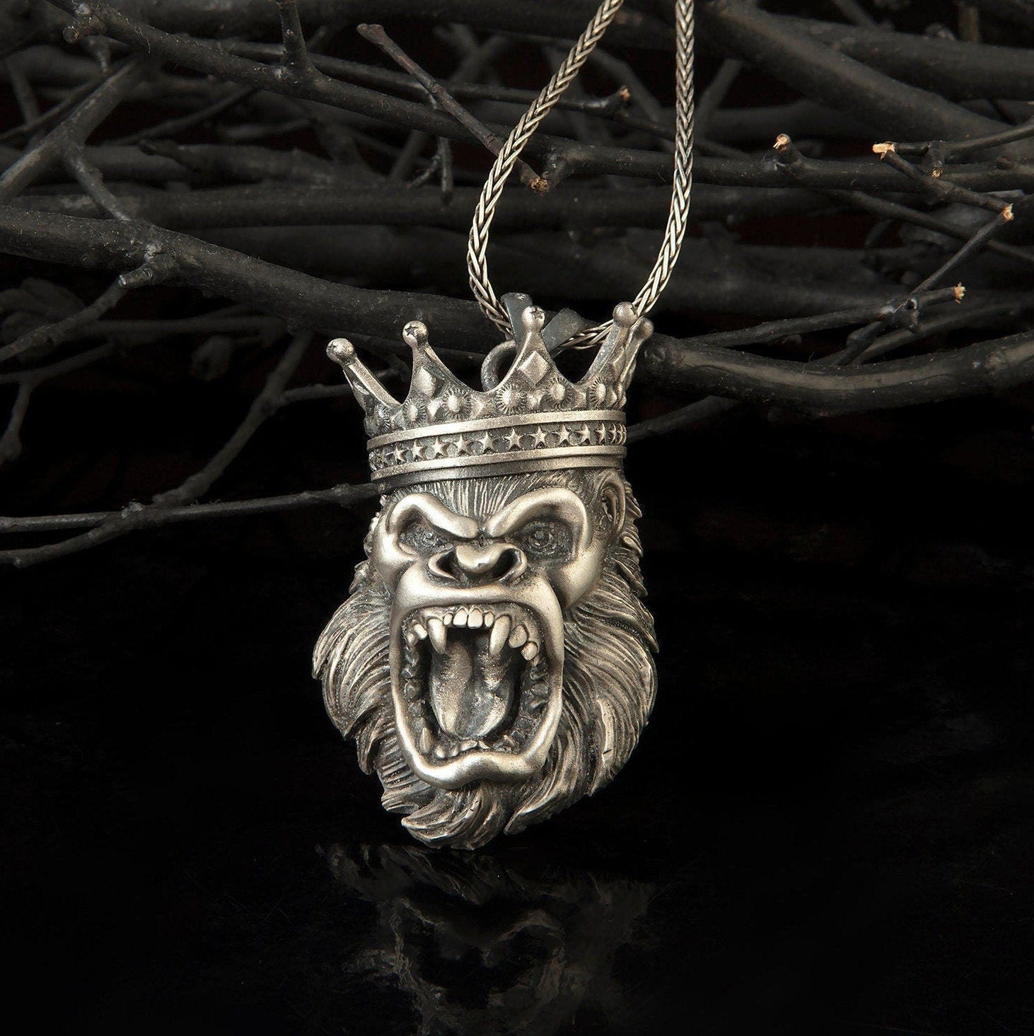 Sterling Silver Gorilla Necklace, King Crowned Gorilla Pendant, Monkey Pendant, Gift For Man, Animal Pendants, Unique Gift For Father's Day