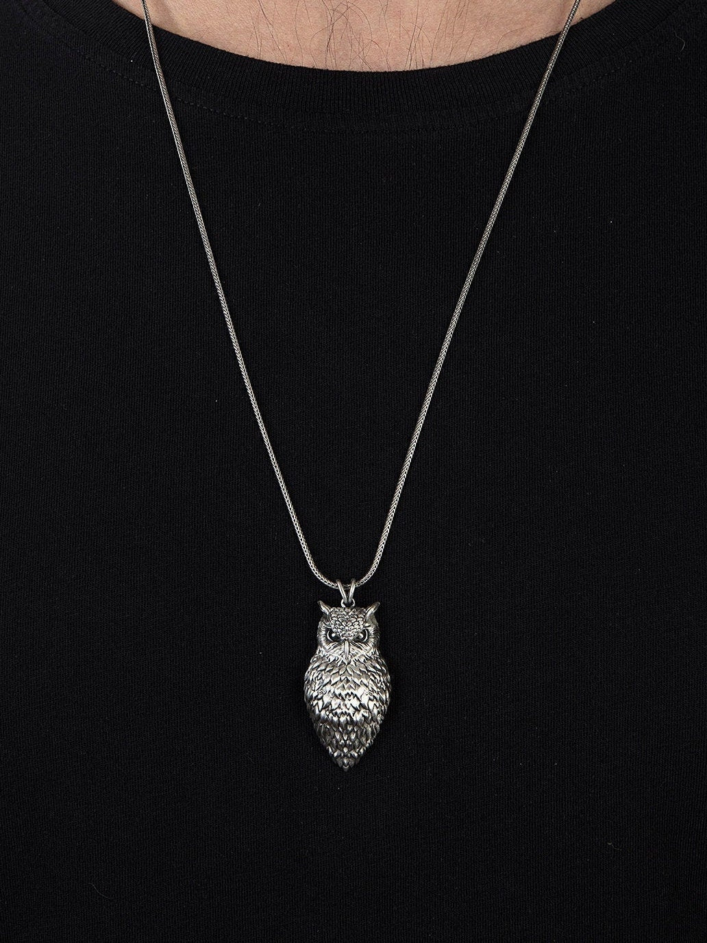 Sterling Silver Owl Necklace, Silver Owl Pendant, Oxidized Solid Silver Animal Necklace, Gift Jewelry For Men, Unique Gift For Father's Day